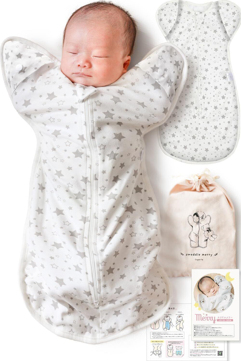 【IHDI認証済み】スワドル おくるみ 新生児 【助産師が推薦 100%天然コットン】コペルタ ベビー用品 出産祝い (HOSHI, Small)