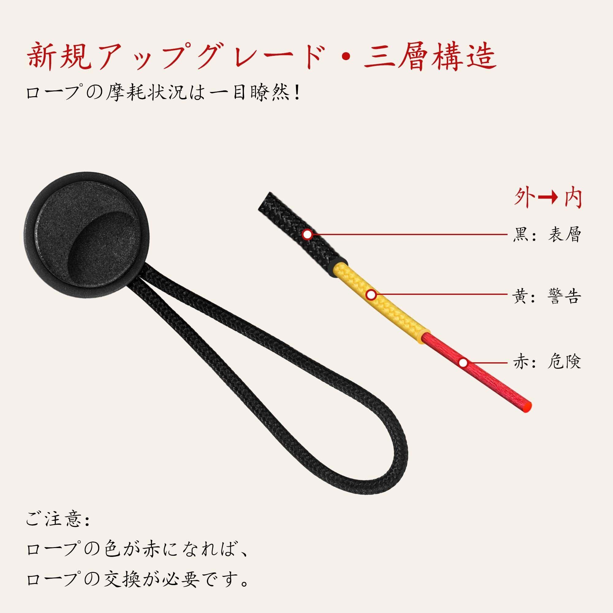 【三層構造】アンカー先端のナイロンロープは特殊な三層構造の織り方を採用しており、三層の色は外から内に向かって黒-黄-赤です。ロープの色が赤になれば、ロープを交換する必要があることを意味し、これにより、ロープの摩耗状況が分かりやすい。