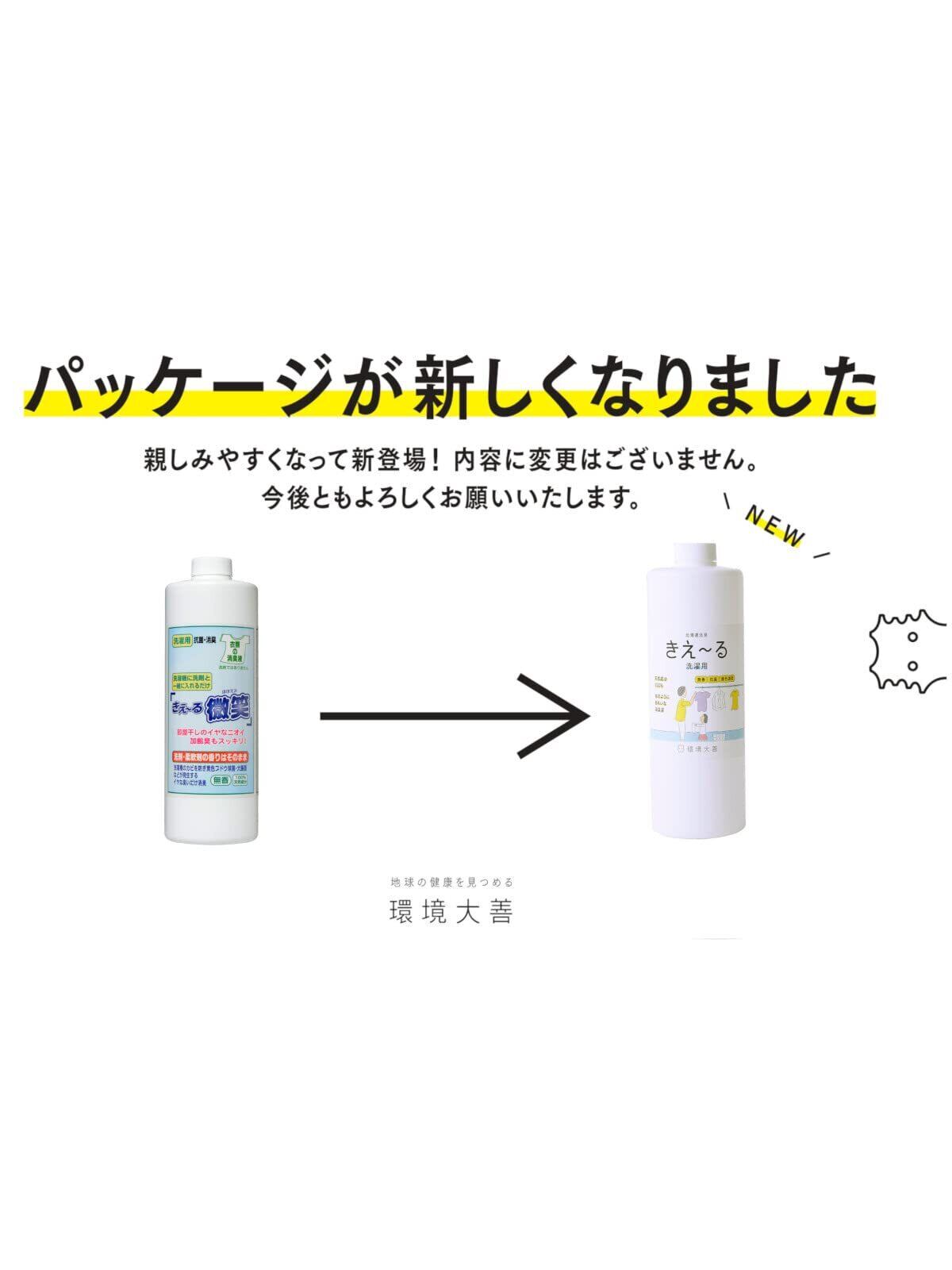 環境ダイゼン 消臭剤 洗濯用 衣類用 1L 無香料 きえ~る 善玉活性水 加齢臭や部屋干しのニオイを消臭 洗剤と一緒に入れるだけ 1本入 単品 1個