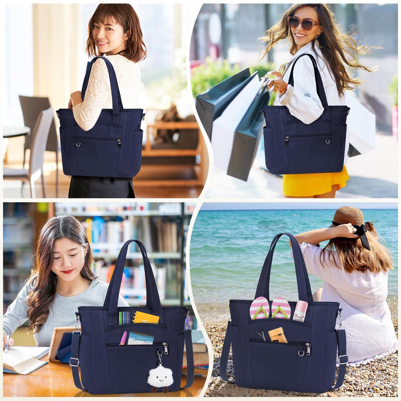 【在庫セール】[NUBILY] トートバッグ レディース キャンバス ショルダーバッグ メンズ 大容量 軽量 キャンパストート 斜めかけバッグ おしゃれ 帆布バッグ お買い物 旅行 通勤 通学 ブラック ネイビー ベージュ | allstore2