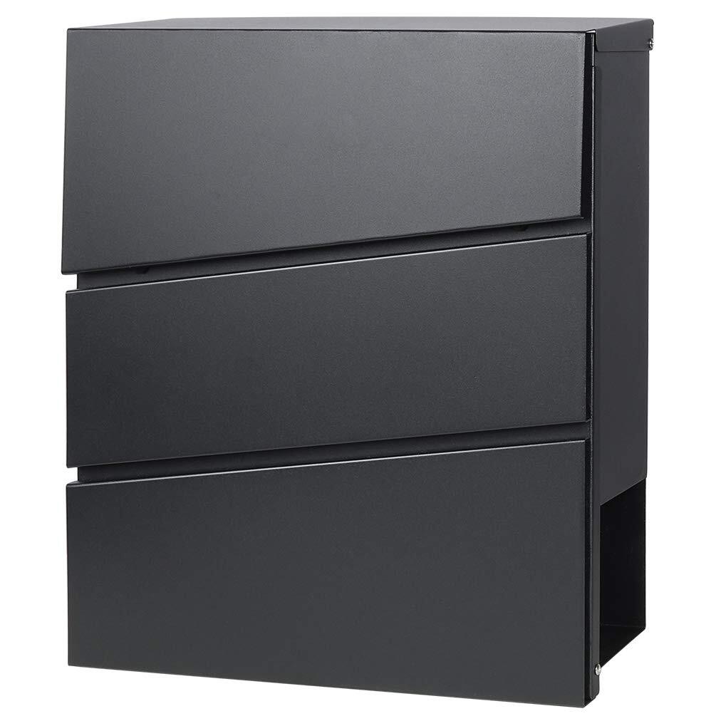 Jssmst(ジェスマット) メールボックス 郵便受け ポスト 大型 郵便ポスト ファミリーポスト キーロック式 新聞受け ブラック 35*33*10cm(932-Black)