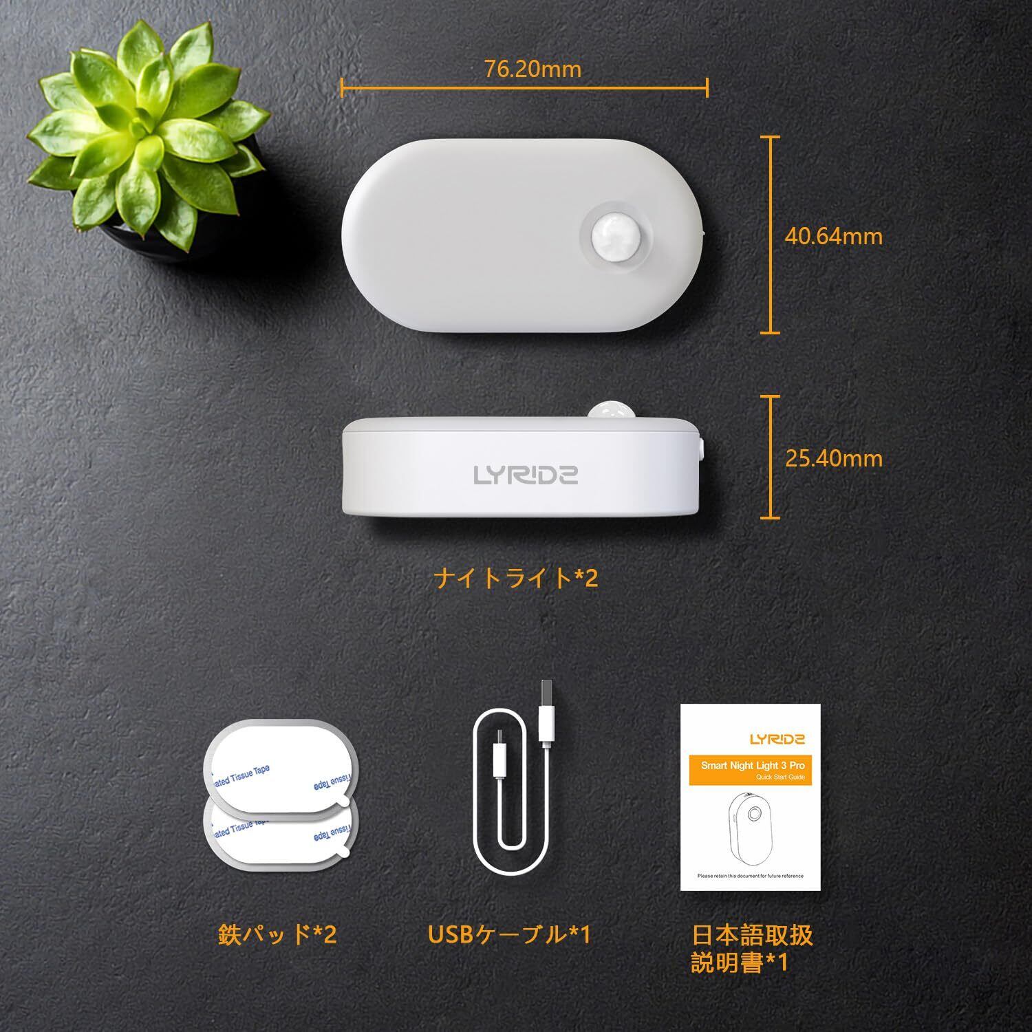 Lyridz LEDセンサーライト 人感センサー 足元灯 usb充電式 足元ライト 人感 ナイトライト 無段階明るさ調節 3つのモード 電球色 省エネ 廊下 寝室 玄関 階段 【2個セット·日本語取説】