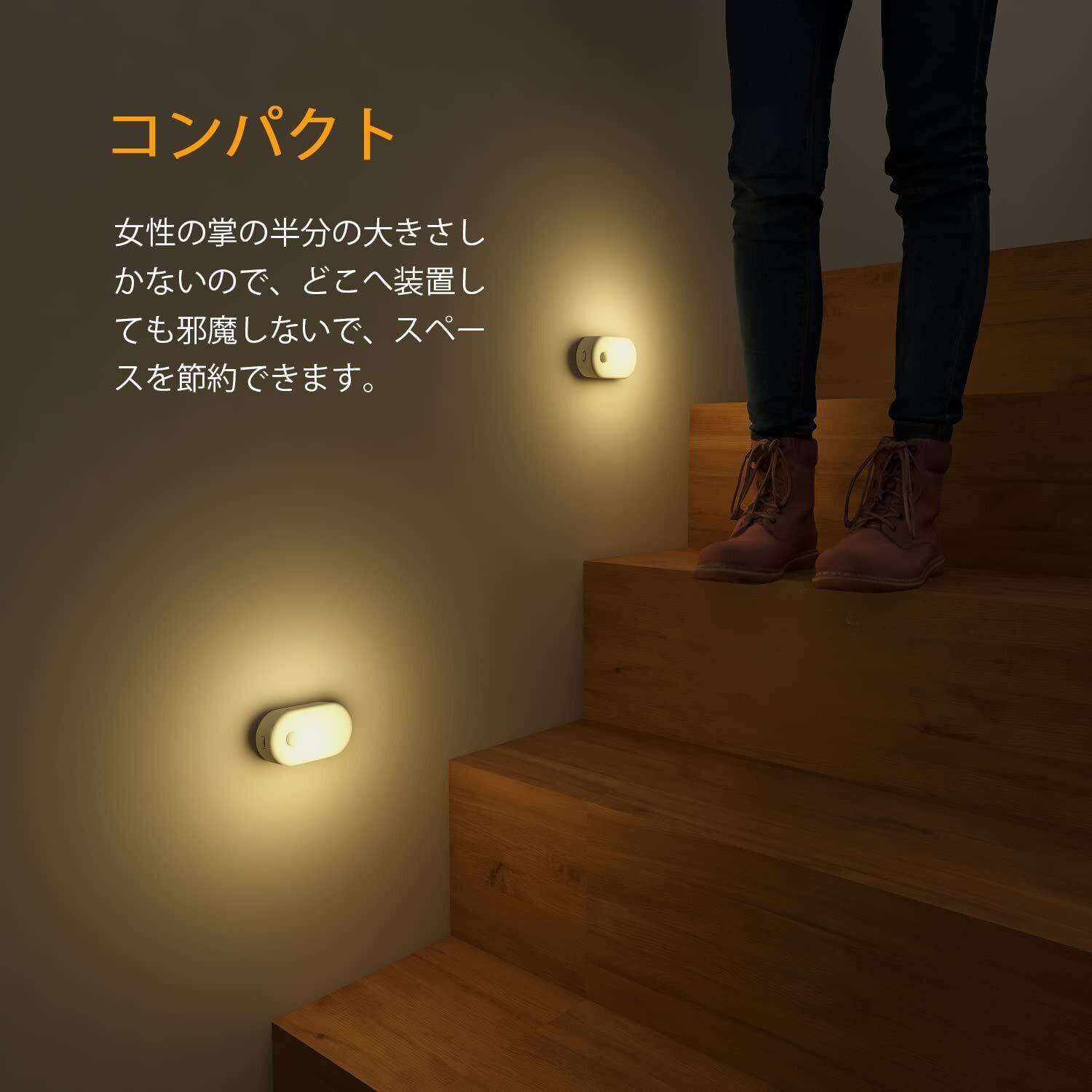 【在庫処分】Lyridz LEDセンサーライト 人感センサー 足元灯 usb充電式 足元ライト 人感 ナイトライト 無段階明るさ調節 3つのモード 電球色 省エネ 廊下 寝室 玄関 階段 【2個セット·日本語取説】