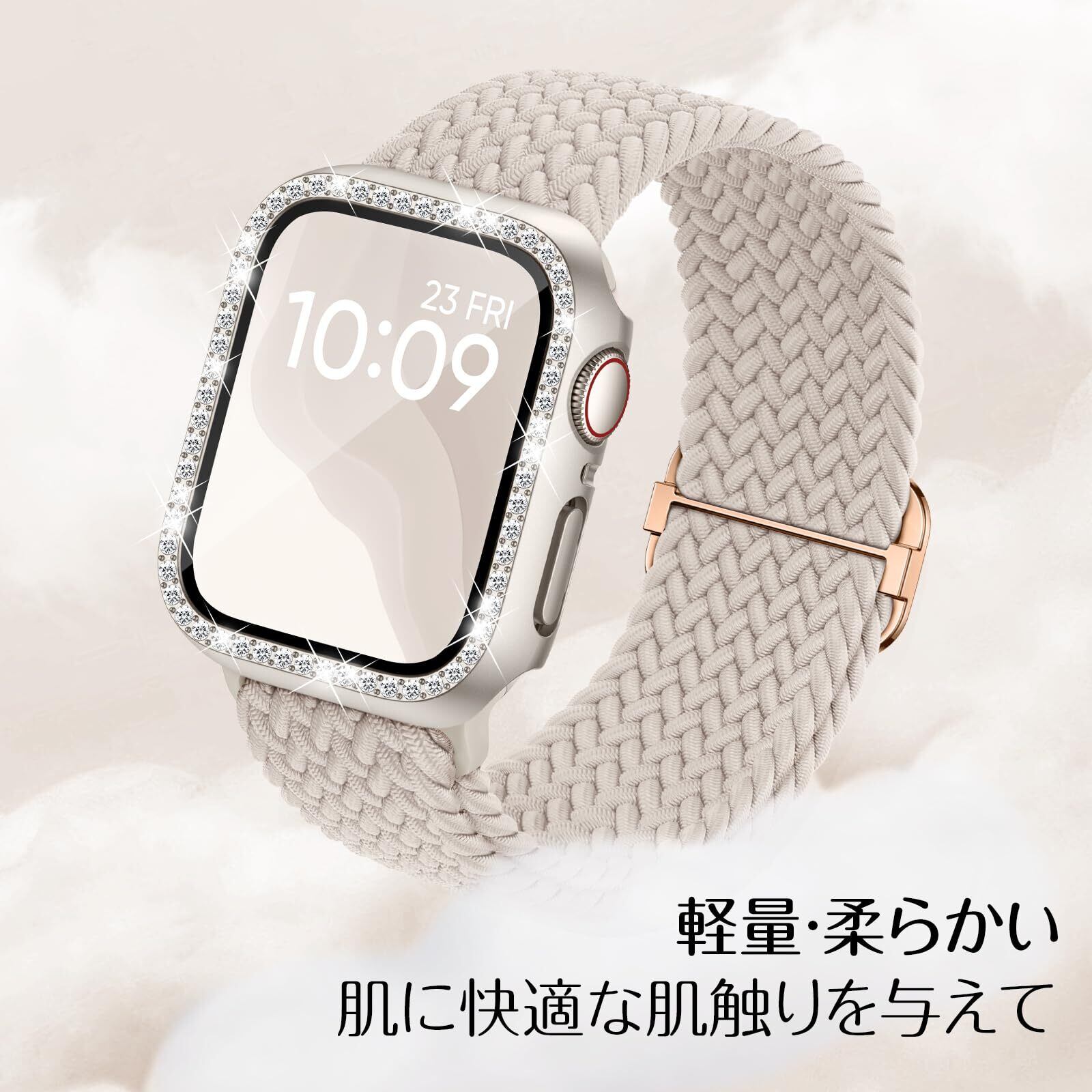 【おしゃれな色合い】日本で人気色味の互換用アップルウォッチ 編み込み バンドと同色のキラキラ カバーをセットにして。アップルウォッチ 一体型バンドの特徴を活かし、デバイスと渾然一体となった可愛らしい統一感を実現。飽きのこないシンプルデザインで、カジュアルからフォーマルまで幅広いシーンにマッチ。