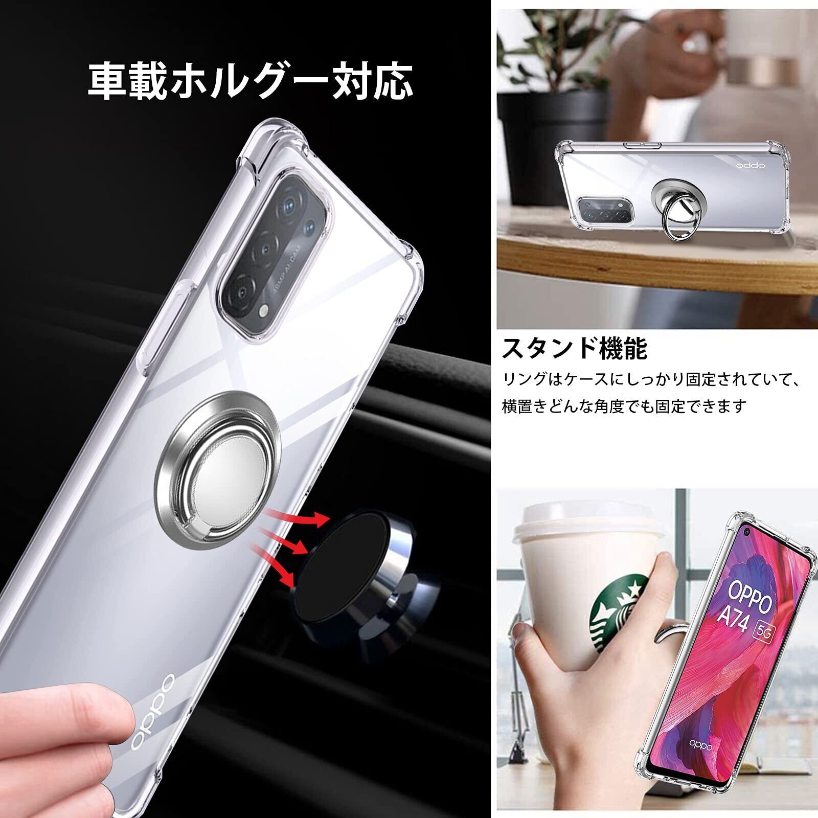 OPPO A54 5G ケース リング クリア TPU シリコン リング付き薄型 軽量シリコン 耐衝撃 指紋防止 360回転 車載ホルダー対応 一体型 人気 携帯カバー スマホケースOPPO A54専用 (クリア)