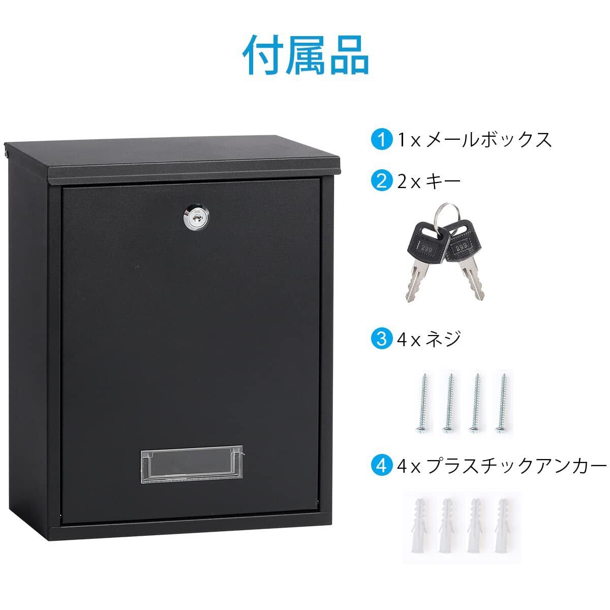 郵便ポスト メールボック 壁掛け ロック鍵付き A4サイズ対応 おしゃれ郵便受け 大容量 玄関 家庭用受け箱 (02-キーロック)