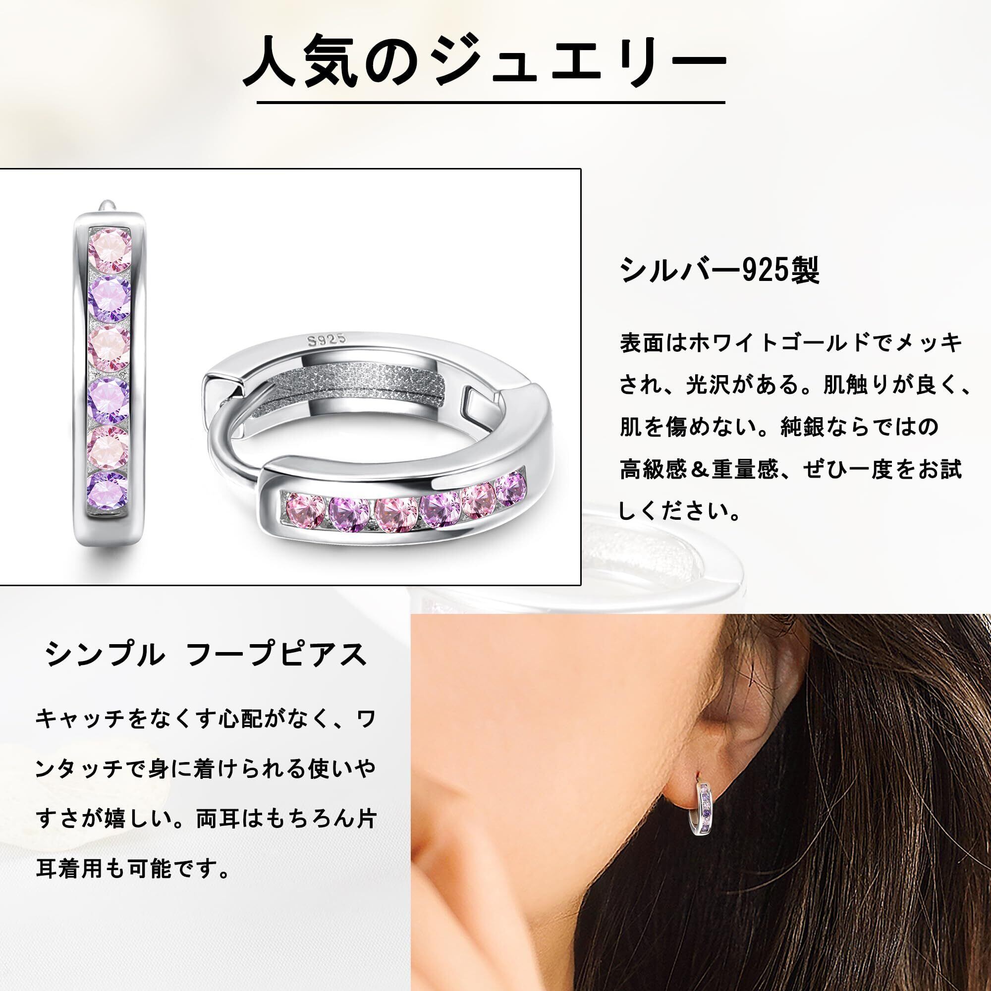 【フープピアス】レディースピアスサイズ:10mm。メインストーン:最高級キュービックジルコニア。素材:シルバー925。S925と刻印された人気のレディースピアス。このウンドフープ イヤリングは敏感な耳にも優しい非アレルギー性で、鉛とニッケルを含まず。金属アレルギー対応ピアスレディース表面には優しいホワイトゴールド/ピンクゴールドコーティングがめっきされており、肌に優しく、アレルギーになりにくい。シルバーイヤリングは着け心地がよく、ベッドにもつけられます。