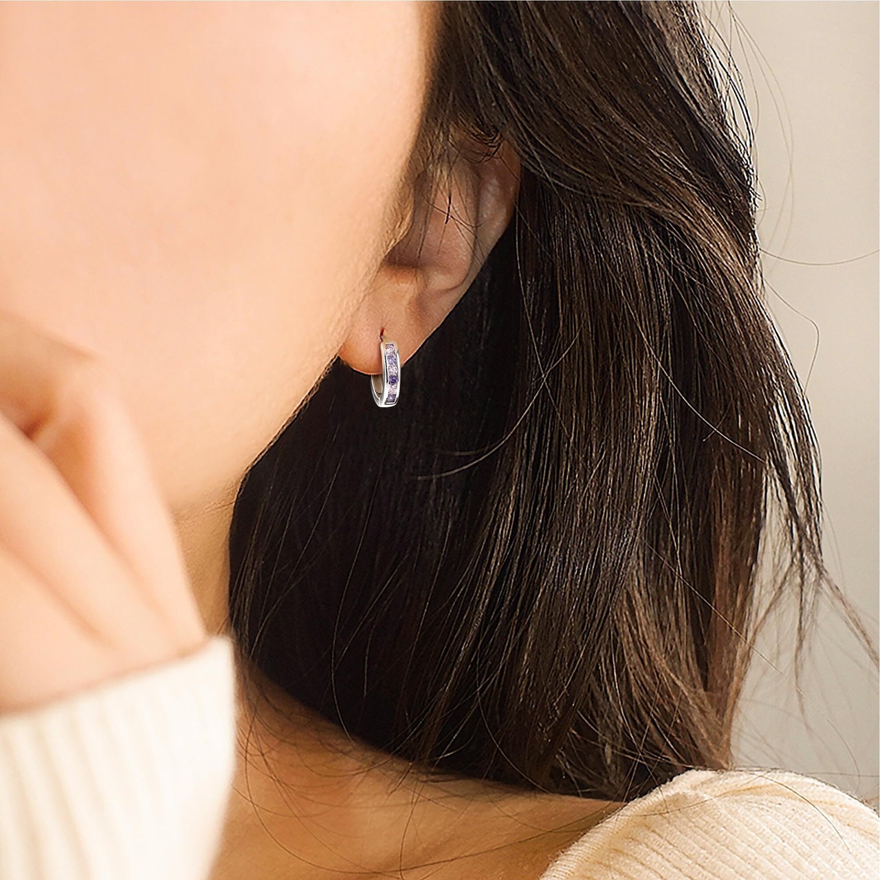 【シンプルなデザイン】軟骨フープピアスとしてもお使いいただけるフープピアスは、片耳でも両耳でもお使いいただけます。ピアスの表面は鏡面仕上げで上品な輝きを放ち、洗練された印象を際立たせます。ピンクやパープルに輝くジルコニアがセットされ、さらに輝きを増しています。 流行に左右されないクラシックなスタイルのピアスリングです。