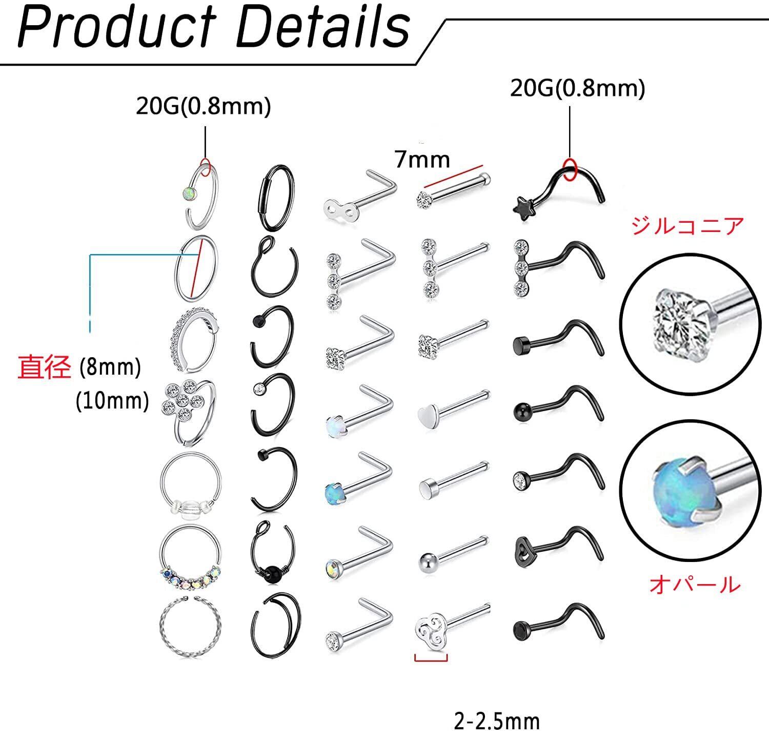 [Aroncent] ボディピアス 20G 鼻ピアス L 鼻リング 軟骨ピアス ステンレス フェイクピアス メンズ レディース ファッション アクセサリー (36点セット)