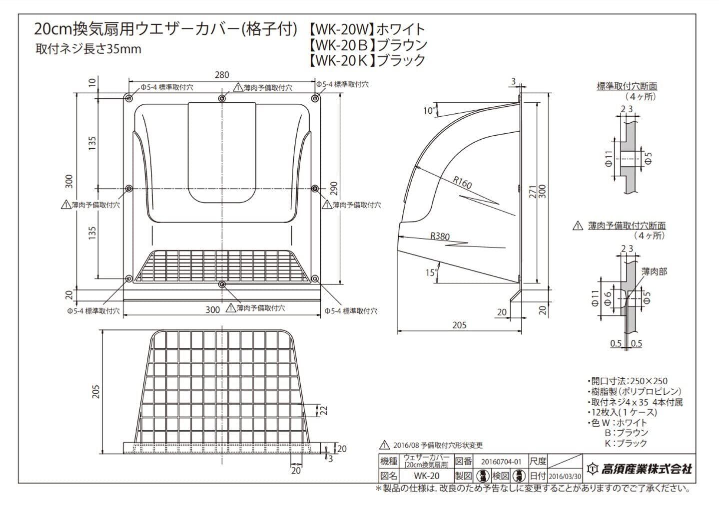 【在庫処分】高須産業 ウエザーカバー20cm換気扇用ブラック WK-20K