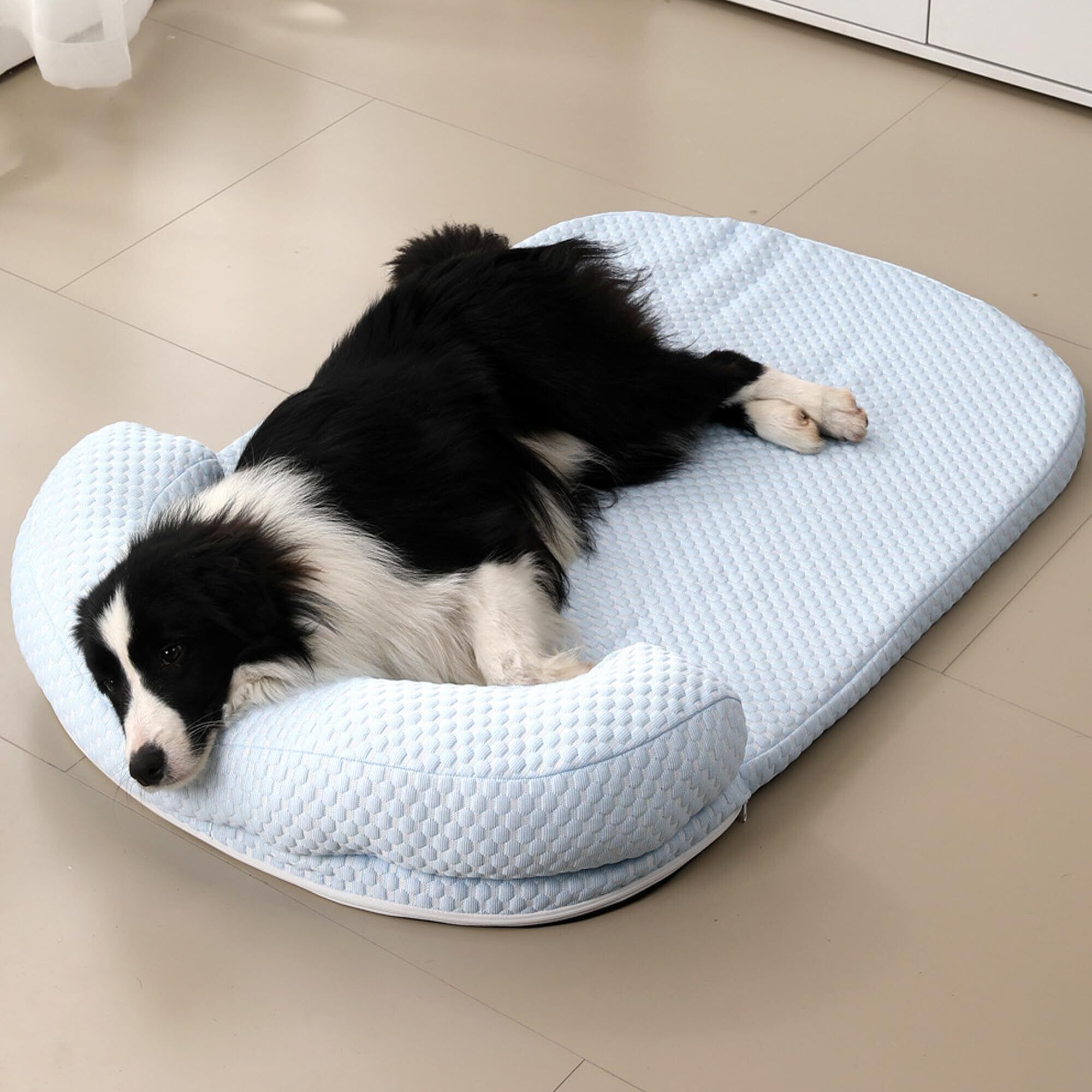 【人気商品】冷感 犬用 ペットベッド 夏 ひんやりマット 枕付きクッション 洗える 中大型犬 猫用 ハウス 通気性優れ 可愛い L 77x56cm