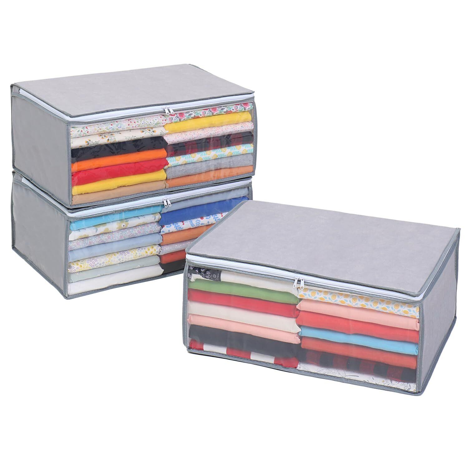 アストロ 衣類収納ケース 3枚組 グレー 通気性の良い不織布製 洋服 収納ボックス 衣装ケース 収納袋 クローゼット 押し入れ 167-01
