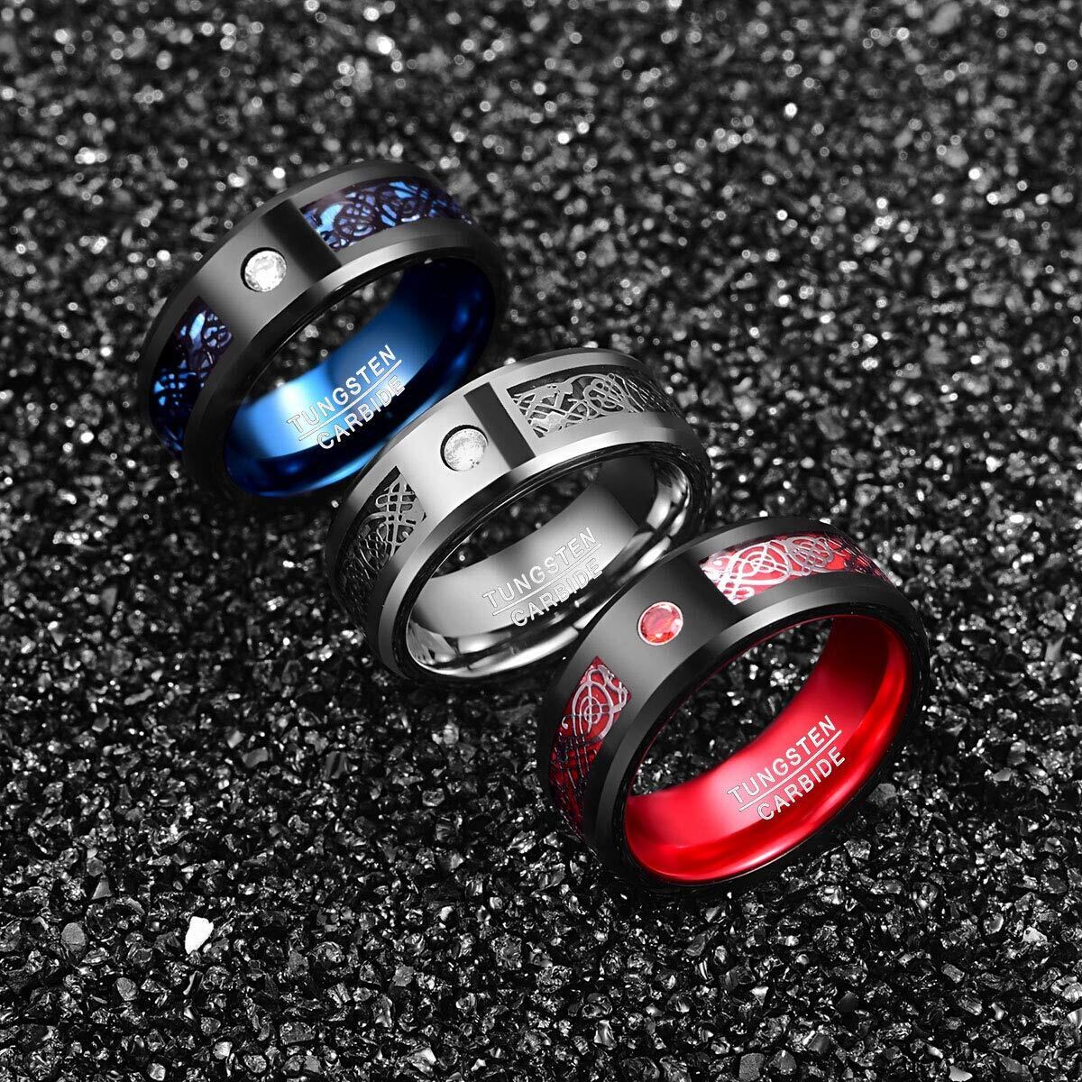 083基地 メンズ 指輪 リング タングステン ドラゴン 竜紋 炭素繊維 キュービックジルコニア 横幅8mm 平打ち ブルー 真空メッキ 17号