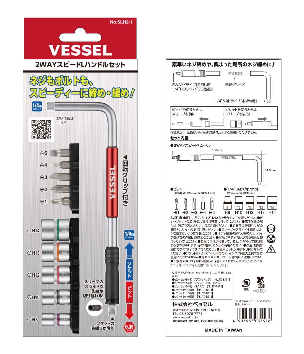 【数量限定】ベッセル(VESSEL) 2WAY スピードL型ハンドル ビット/ソケットセット SLH2-1