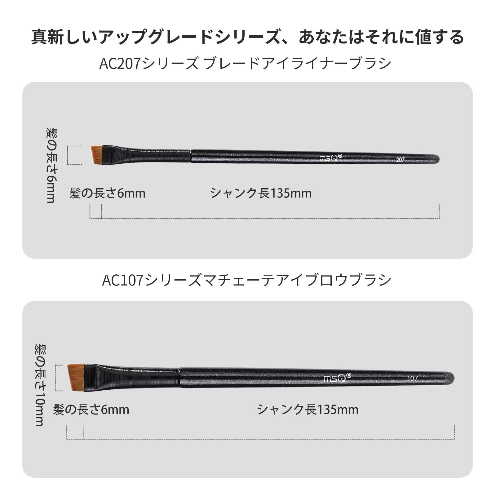 【極細刃ブラシ】 MSQ 2アイライナーブラシとアイブロウブラシの組み合わせで、アイライナーと併用すると、とてもなめらかで細かく描きやすいアイラインが描けます。 0.06mmの極細ブラシヘッドは、アイライナーや眉の形、アイラインの内外を自然に描き、輪郭を描きやすい。 とてもお得なメイクブラシセットです。