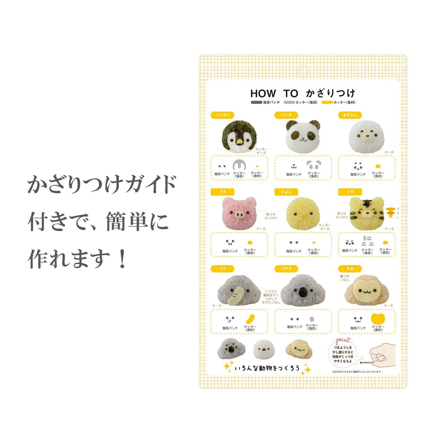 ●9種類の動物のおにぎりが作れる、おにぎり型・海苔パンチ・カッターのセット。
