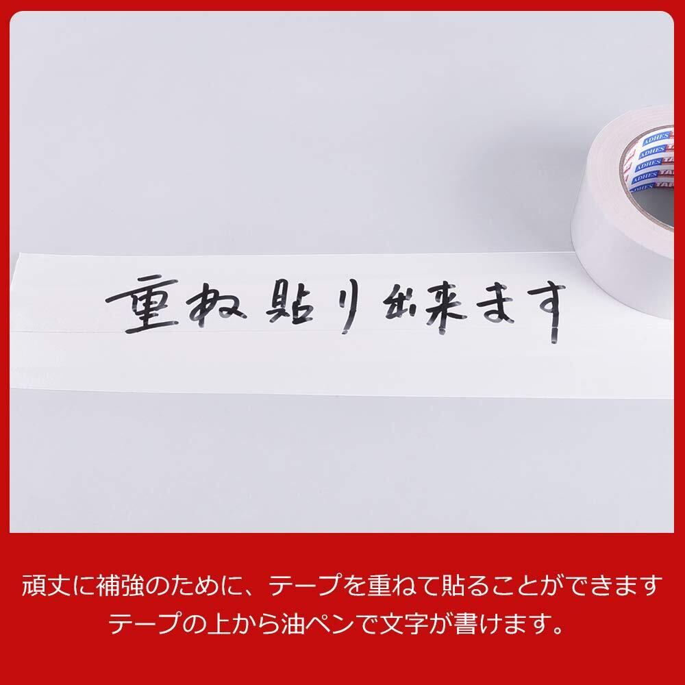 【重ね貼り可能のガムテープ】貼った後、さらに重ねて貼ったり、頑丈に補強したい時に適します。油性ペンで文字が書けて、段ボールを区別するときやマーキングするときにとても便利です。