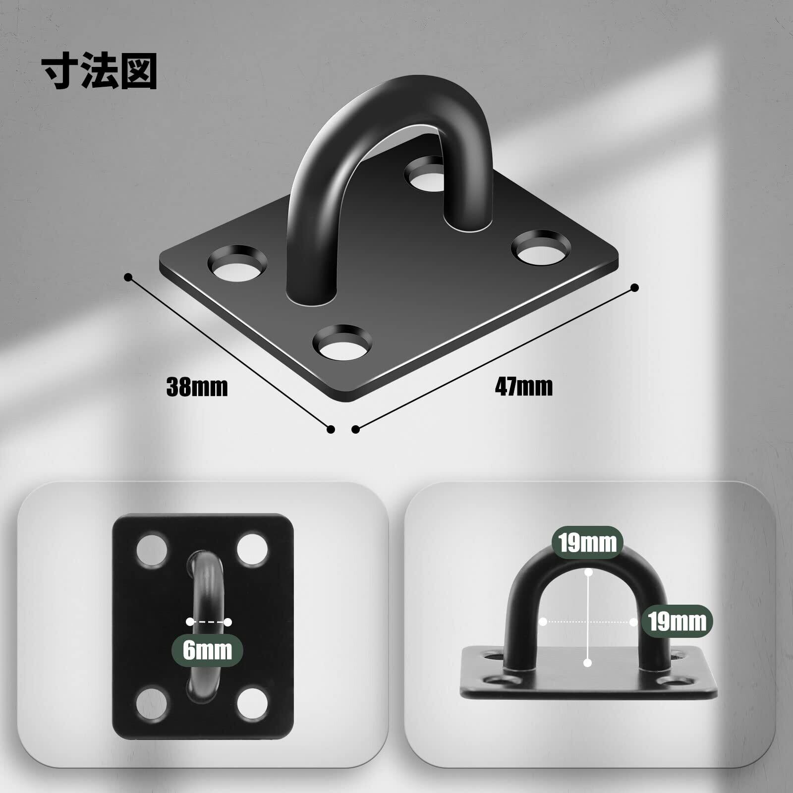 アイプレート パッドアイ ステンレス制 長方形 天井 フック 日除け サンシェード など用 金具 黒 4個入
