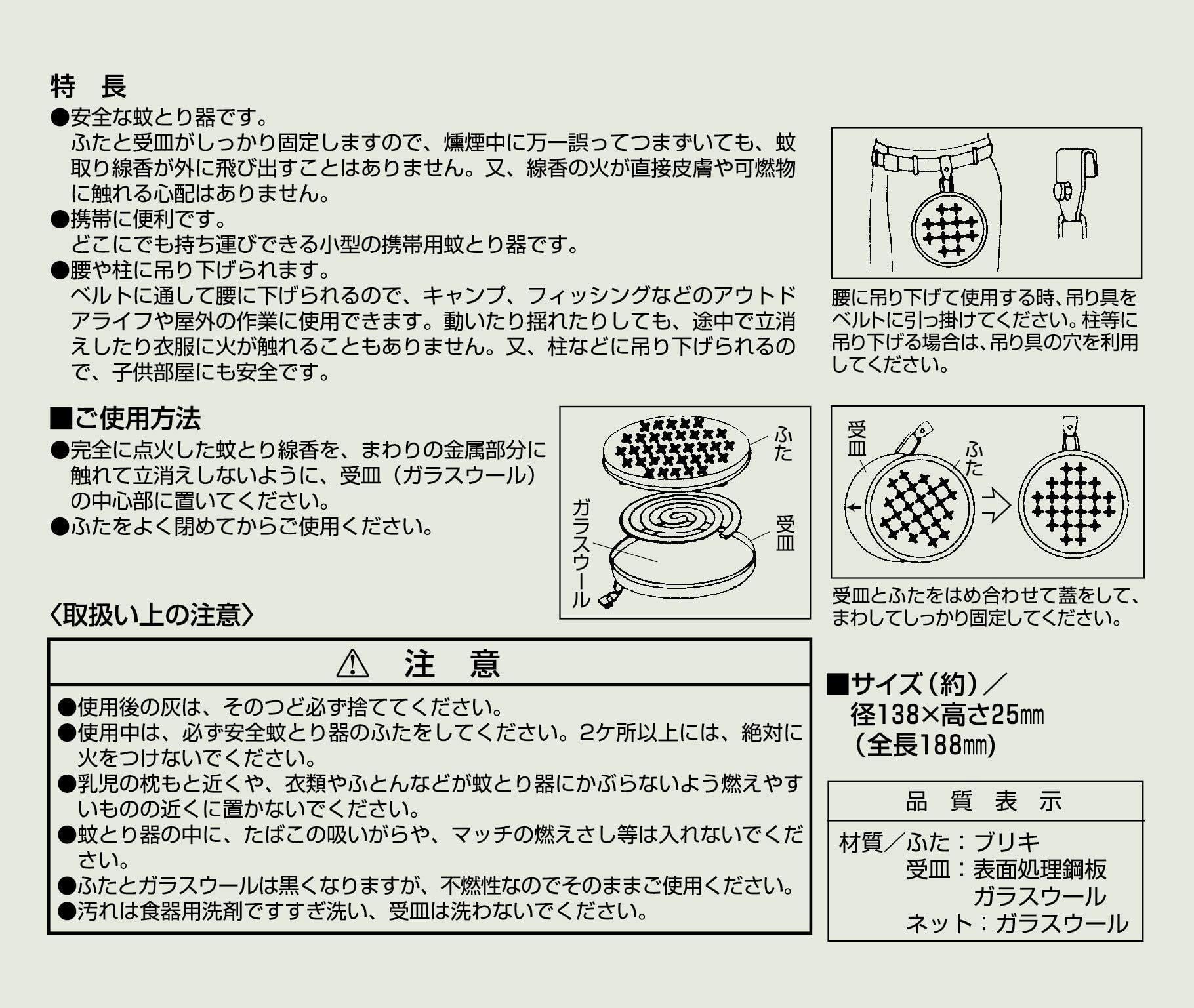 キャプテンスタッグ(CAPTAIN STAG) 蚊取り 蚊取り線香 蚊取り線香ホルダー 線香皿 防虫器 蚊取り器 携帯用 安全蚊とり器 日本製 M-7795 / UZ-13201
