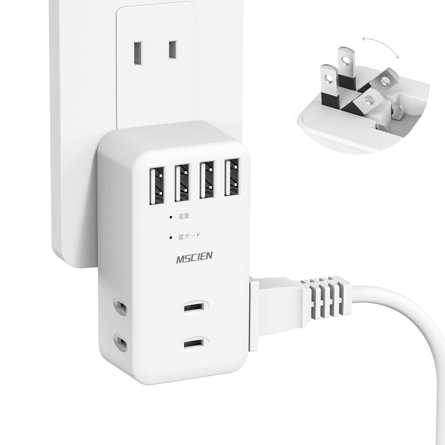 コンセント タップ usb 電源タップ USB 雷ガード コンセント 3個AC口4個USBポート たこあしコンセント 直挿しタップ oaタップ 分岐 充電タップ マルチタップ