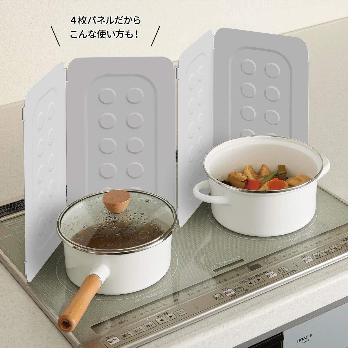 使いたい時にサッと開いて立てるだけ、油ハネを最小限にしっかりとガードできます。