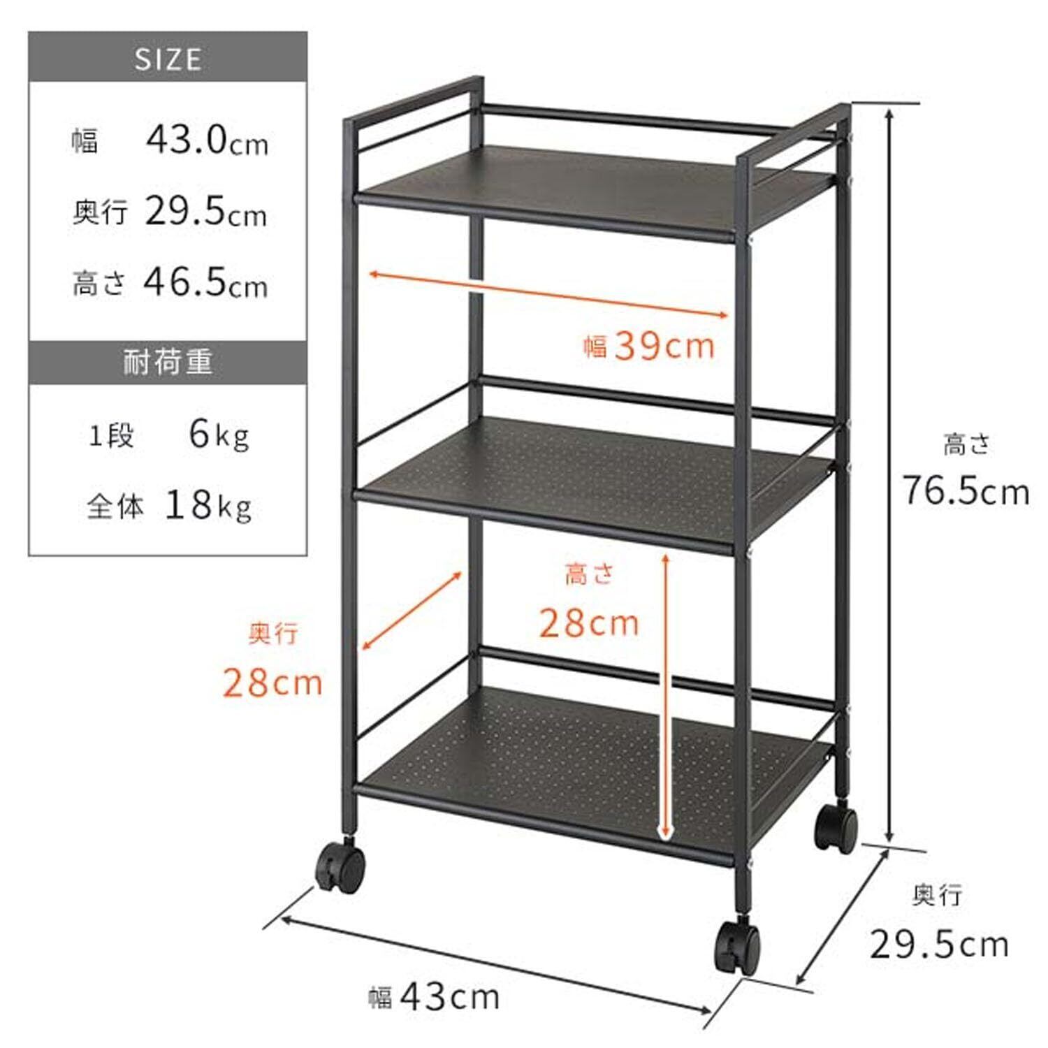 耐荷重:18kg(棚板1枚あたり6kg)