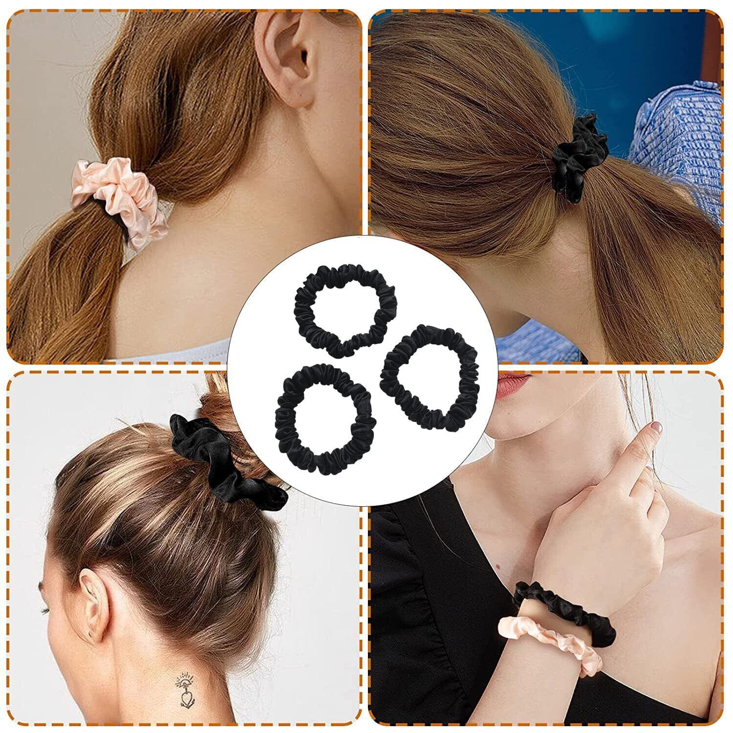 YINKE ヘアゴム シュシュ シルク 髪ゴム 跡がつかないヘアゴム 髪留め 髪ゴム ヘアリング 髪束ね おしゃれ 大人 簡約 高弾性 シンプル 3個セット (ブラック)