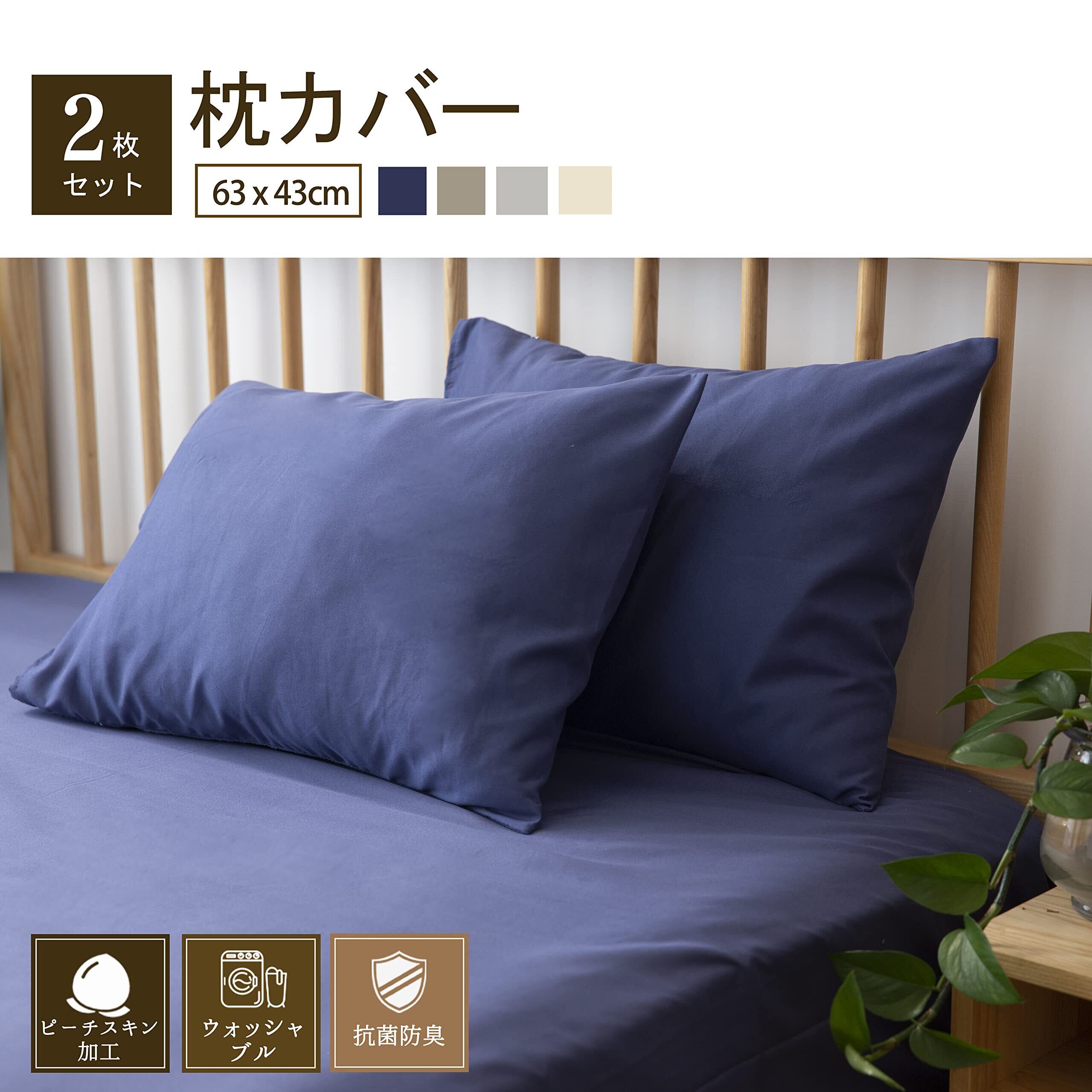 【2022最新】枕カバー 43×63cm 2枚セット 吸湿速乾 オールシーズン 抗菌防臭 合わせ式 ピロケース まくらカバー ネイビー