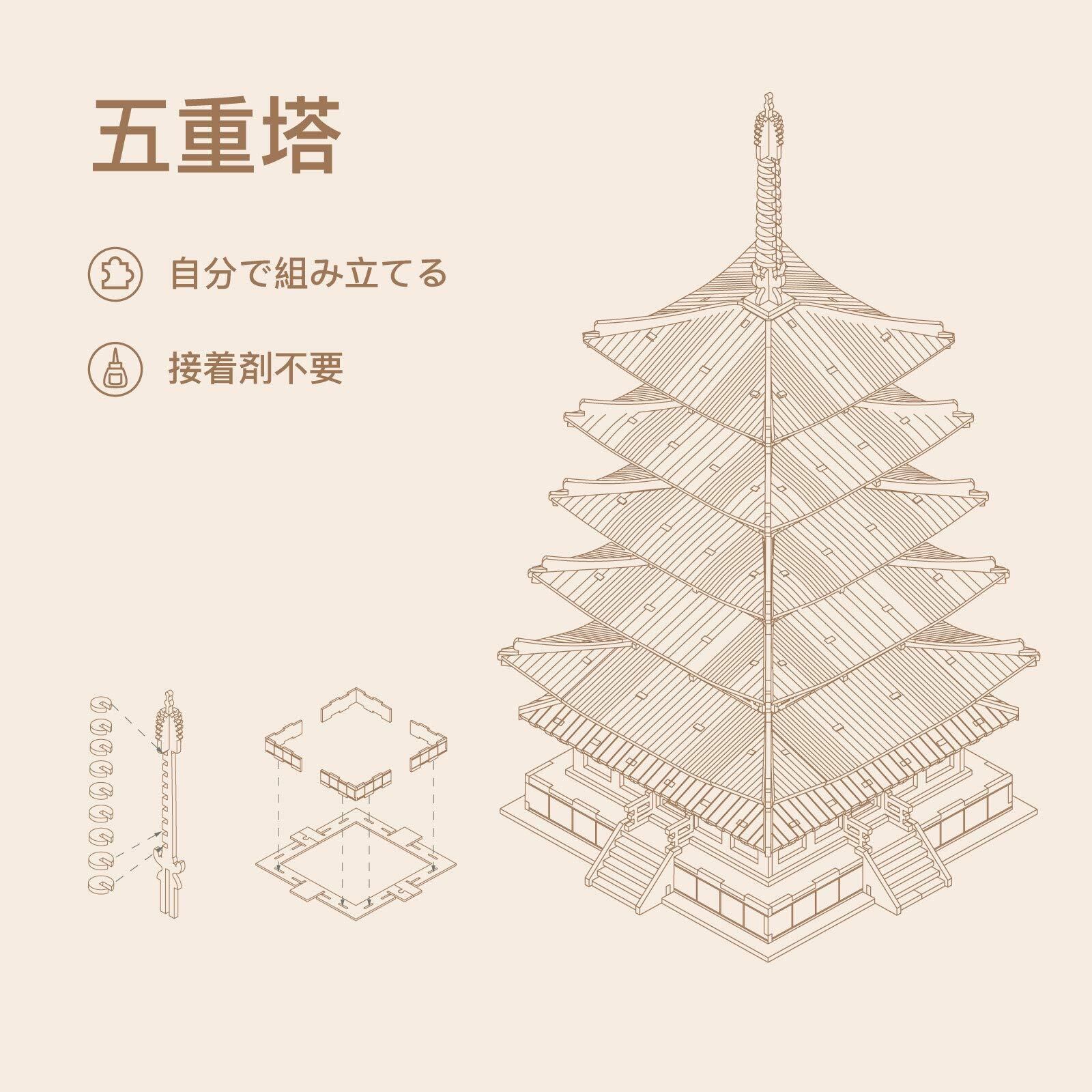 【素敵なディスプレイ】五重塔の木製モデルキットは275個の木片で構成されており、組み立てに2〜3時間かかります。