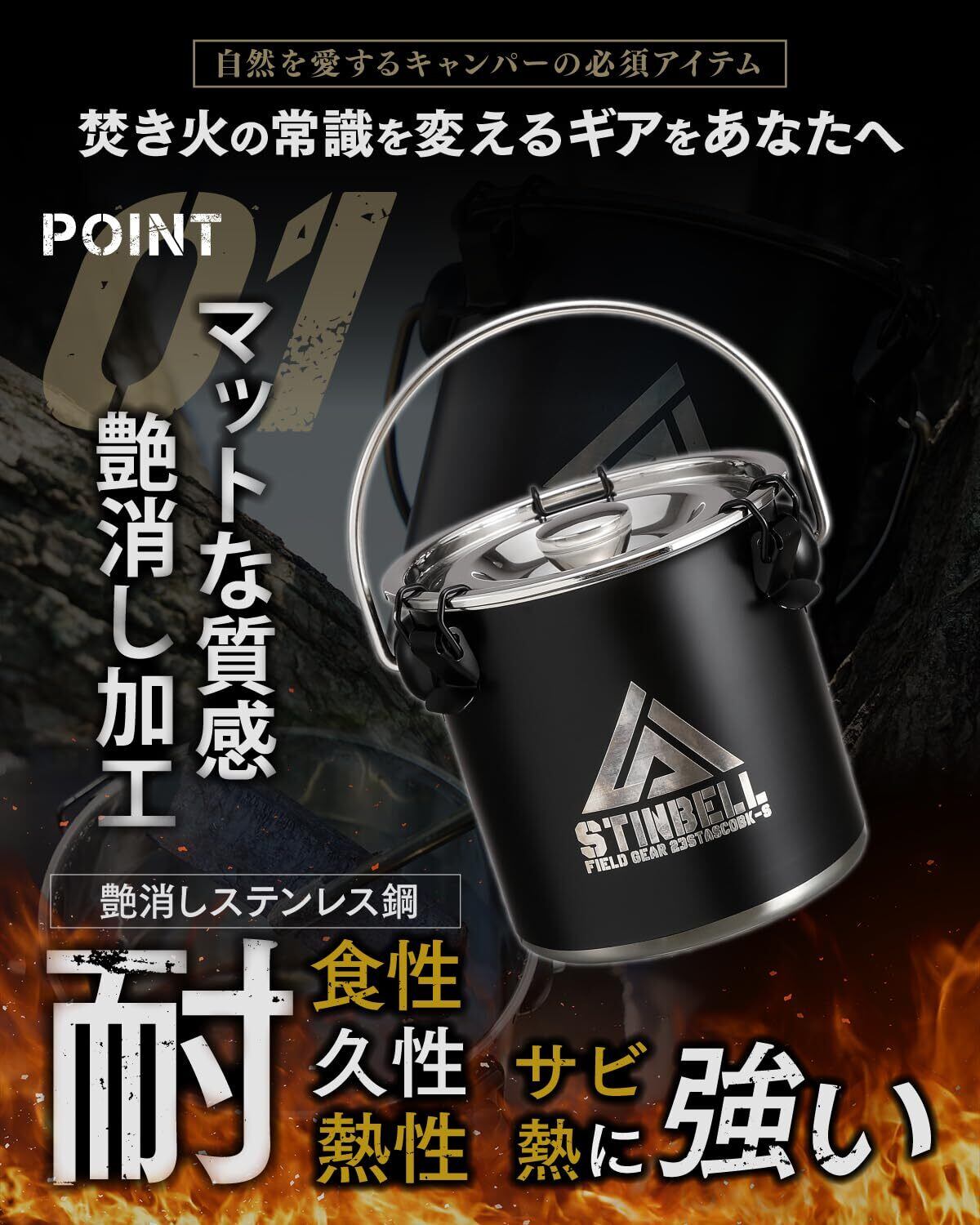 【サビ・熱に強いステンレス鋼】耐食性、耐久性、耐熱性に優れたスレンレス鋼を使用した火消しつぼ。サビ・熱に強いタフなキャンプギアになります。自然を愛するキャンパーの必須アイテムです。デイキャンプやオートキャンプはもちろん、自宅等でのBBQにも最適な火消しつぼ