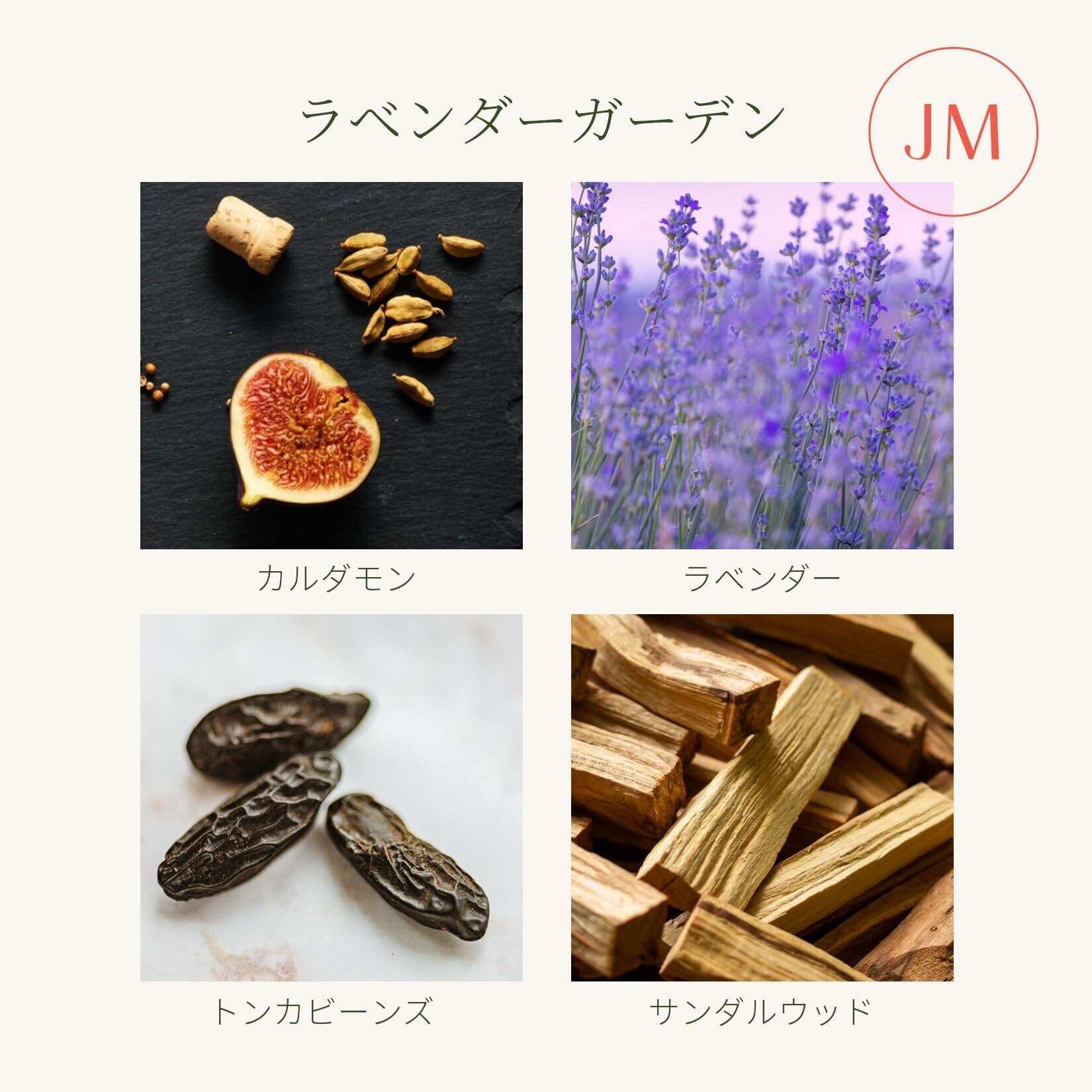 落ち着きのライラックラベンダー- 元気の出るライラックとリラックス効果のあるラベンダーを組み合わせた香りで春の丘を思い出させます。落ち着きと安らぎをもたらし、寝付きも良くなります。