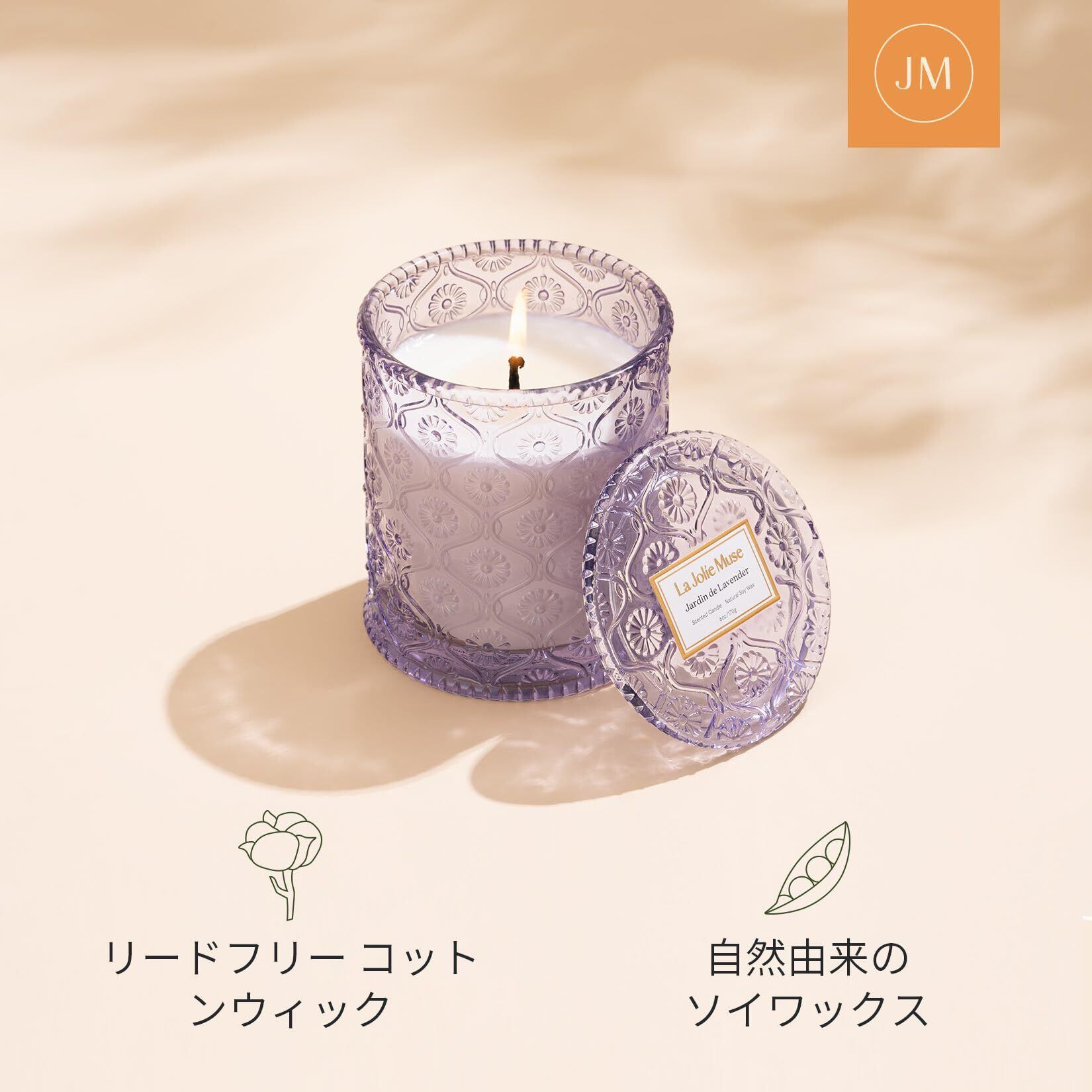 アロマキャンドル ジャーキャンドル ラベンダーライラック 170g 燃焼時間約55時間 ホームフレグランスキャンドル プレゼント