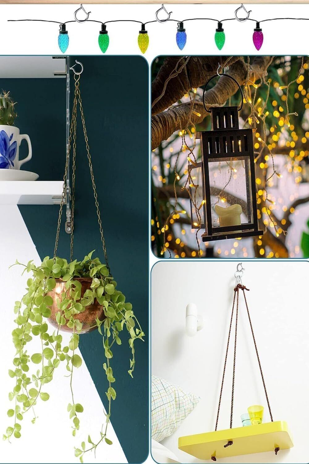 【様々な適用】屋外照明、井、レンガ、木の梁、屋外の屋根、花園、鳥かご、カーテン、ロープ、チェーン、フィーダー、などすべての固体表面に適用しています。吊り、固定金具としても大活躍です。