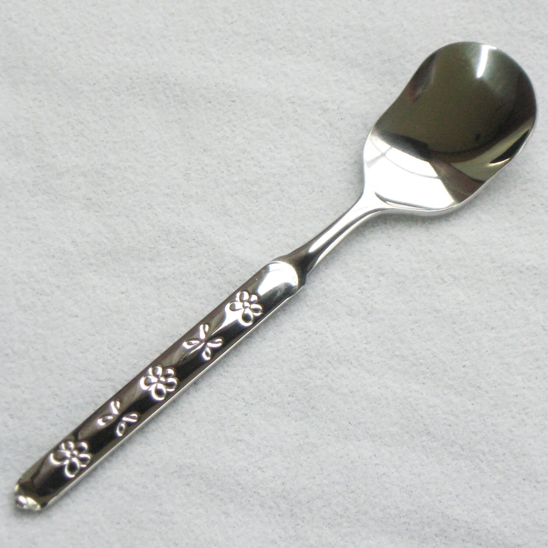 花びらの絵押しが施されているアイススプーン