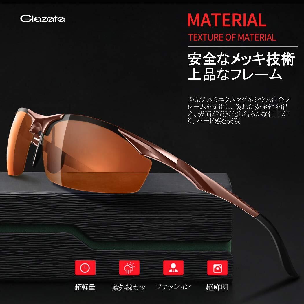 [Glazata] 偏光スポーツサングラス 偏光グラス ・超軽量メタル UV400 紫外線カット ドライブ/野球/自転車/夜釣り/ランニング/ゴルフ/運転