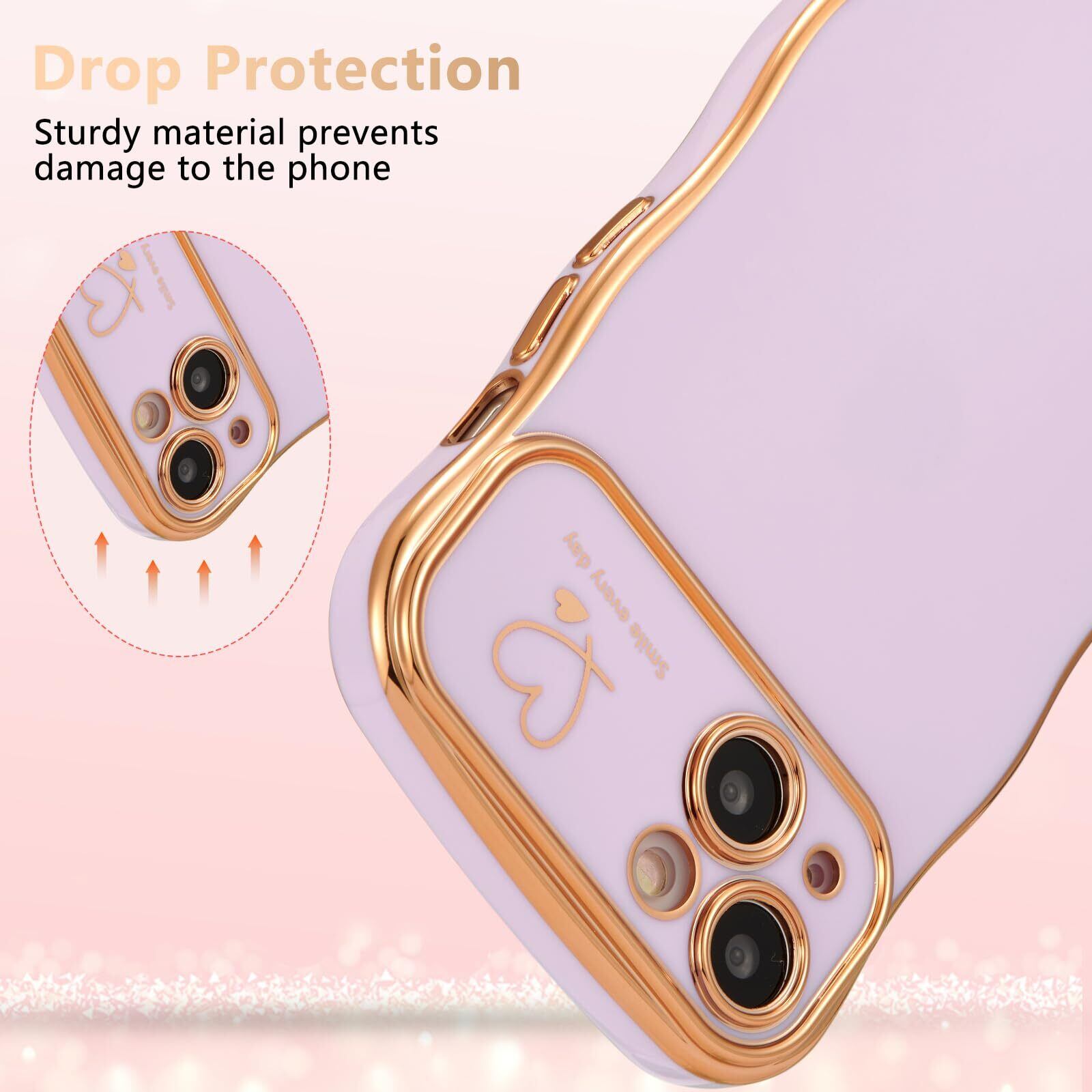 iPhone 15 用 ハートケース 人気 おしゃれ iPhone 15 波型ケース 柔軟な TPU シリコン ウェーブ デザイン スマホケース メッキ加工 ソフト 軽量 耐衝撃 韓国 可愛い アイフォン 15 ケース 女子 女性 携帯電話カバー ワイヤレス充電対応 (パープル)
