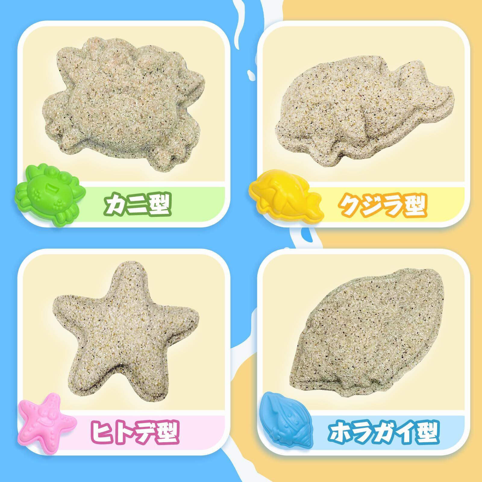 セット内容:スコップ・シャベル・くまで・砂場ダンプカー・4種類の型が付属しています!型に砂を押し込んで固めて、簡単にカニやクジラやホラガイやヒトデを作ることが可能、上手に型抜きできますか?是非挑戦してみてください~~