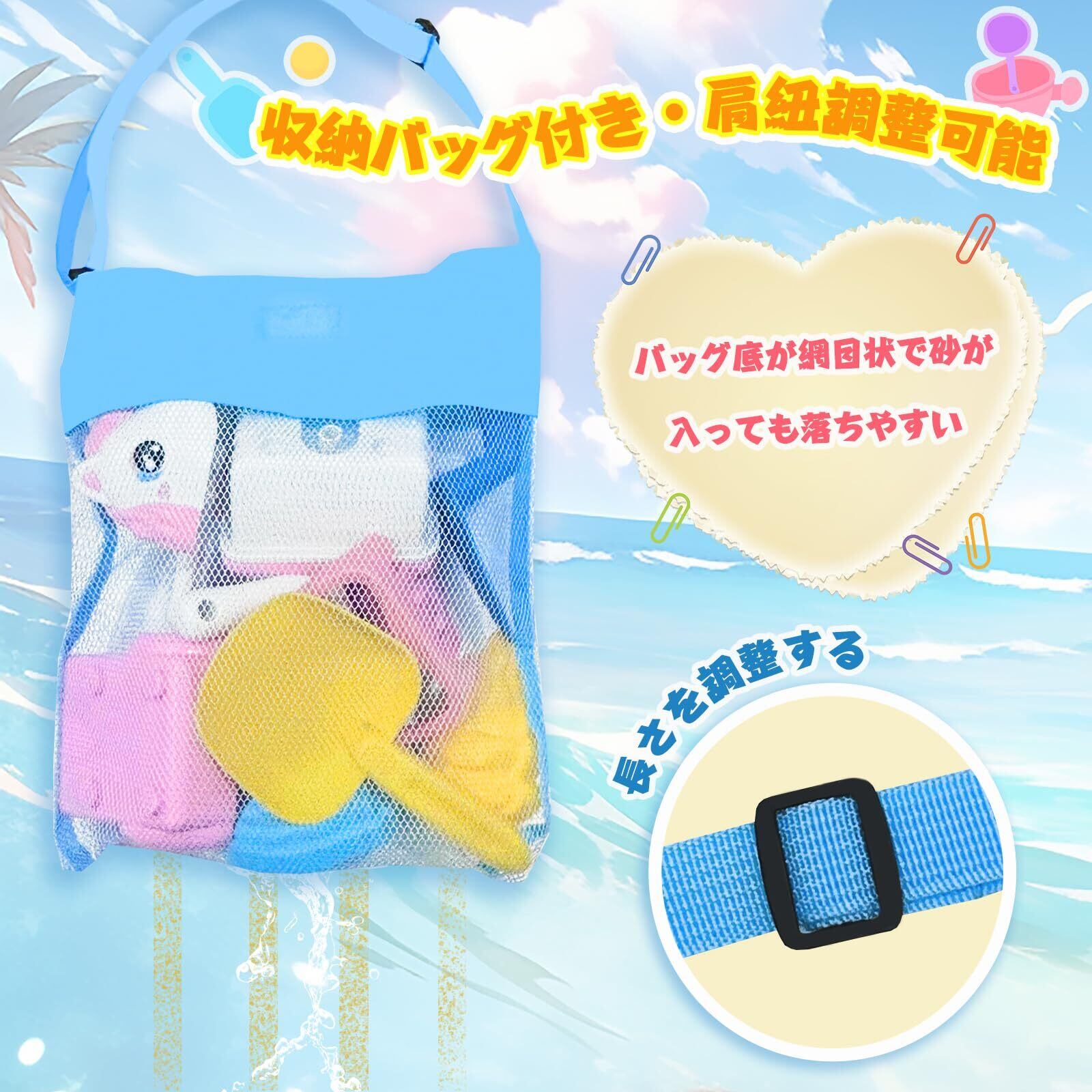 収納バッグ付き:専用の収納バッグが付き、特にバッグ底が網目状で砂が入っても落ちやすいです。肩紐も身長に合わせて、長さを調整することができます、公園・ビーチへ持ち運びが便利です。