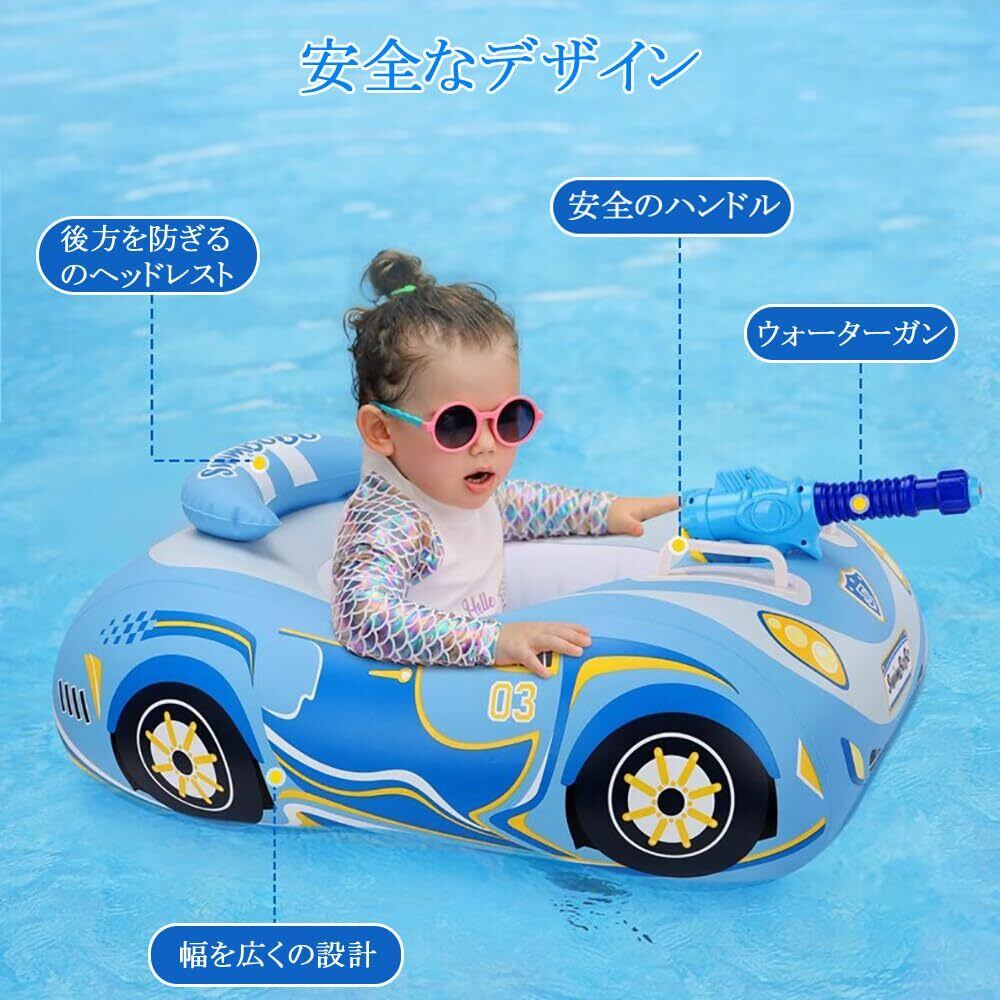 ベビー浮き輪 かわいいボート 赤ちゃん用 足入れ浮き輪 足入れタイプ ベビーフロート 夏の日 海 プール 水遊び 1-6歳の子供適用 ロープ ハンドポンプ付き