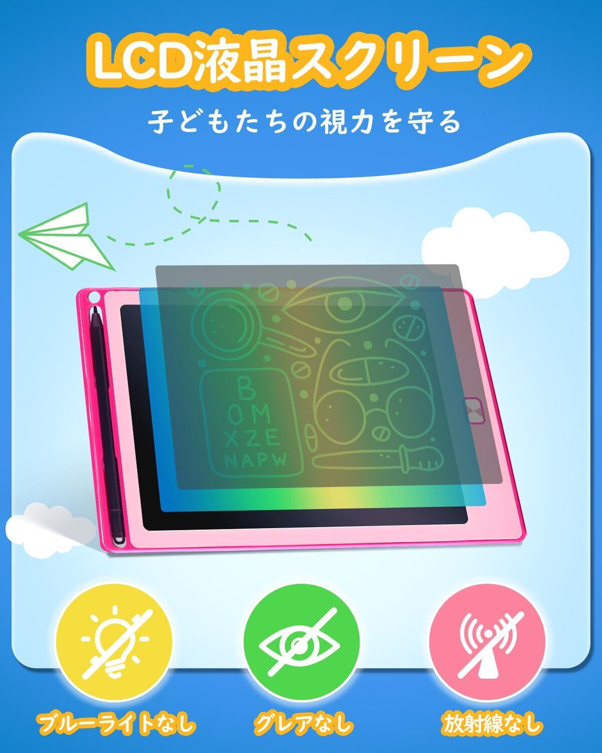 【持ち運び便利】8.5インチのブギーボードは、筆記にちょうど良い面積を確保。目に優しく、長時間使用しても目が疲れません。薄型、軽量、コンパクトで持ち運びに最適、会議、商談、アウトドアでとても実用的です。ご家庭では、伝言板、お絵かきボード、楽しい文房具、メモ帳、電子手帳、漢字練習、学習下書き用紙、計算問題など、学習?筆記ツールとしてもお使いいただけます。