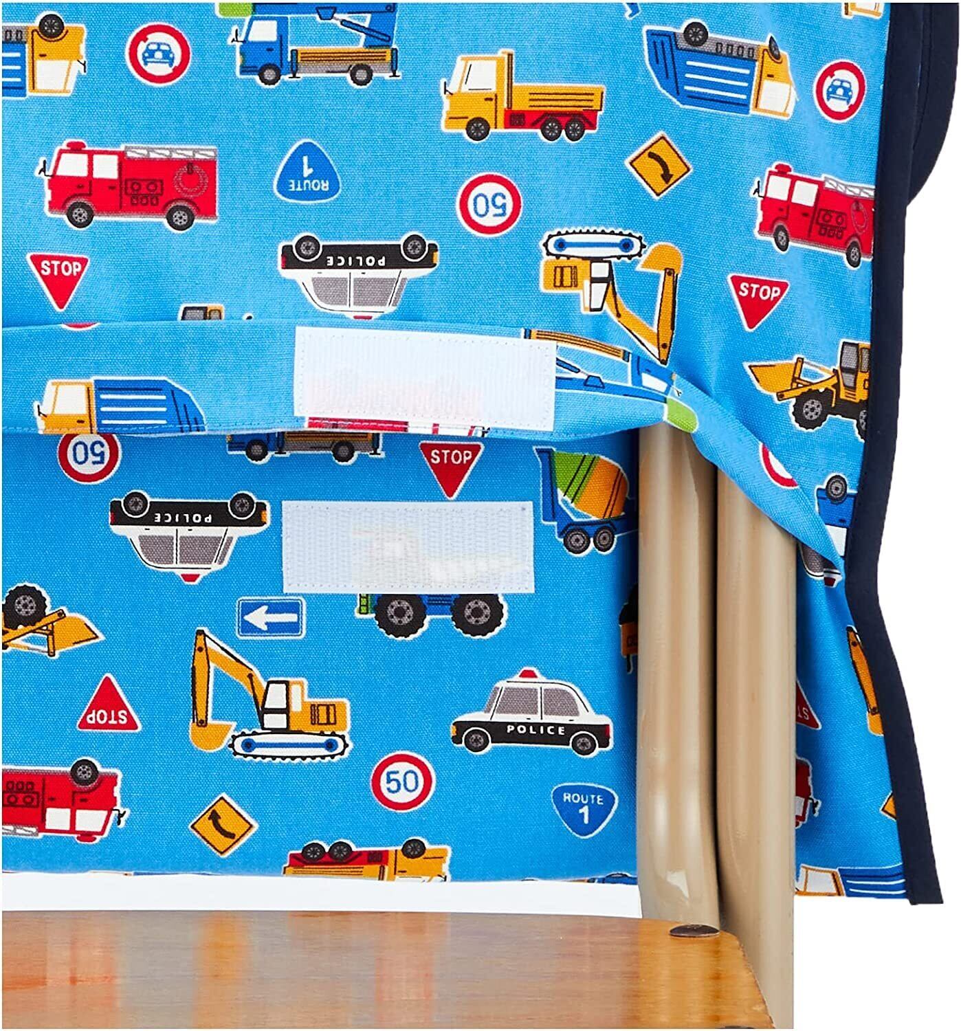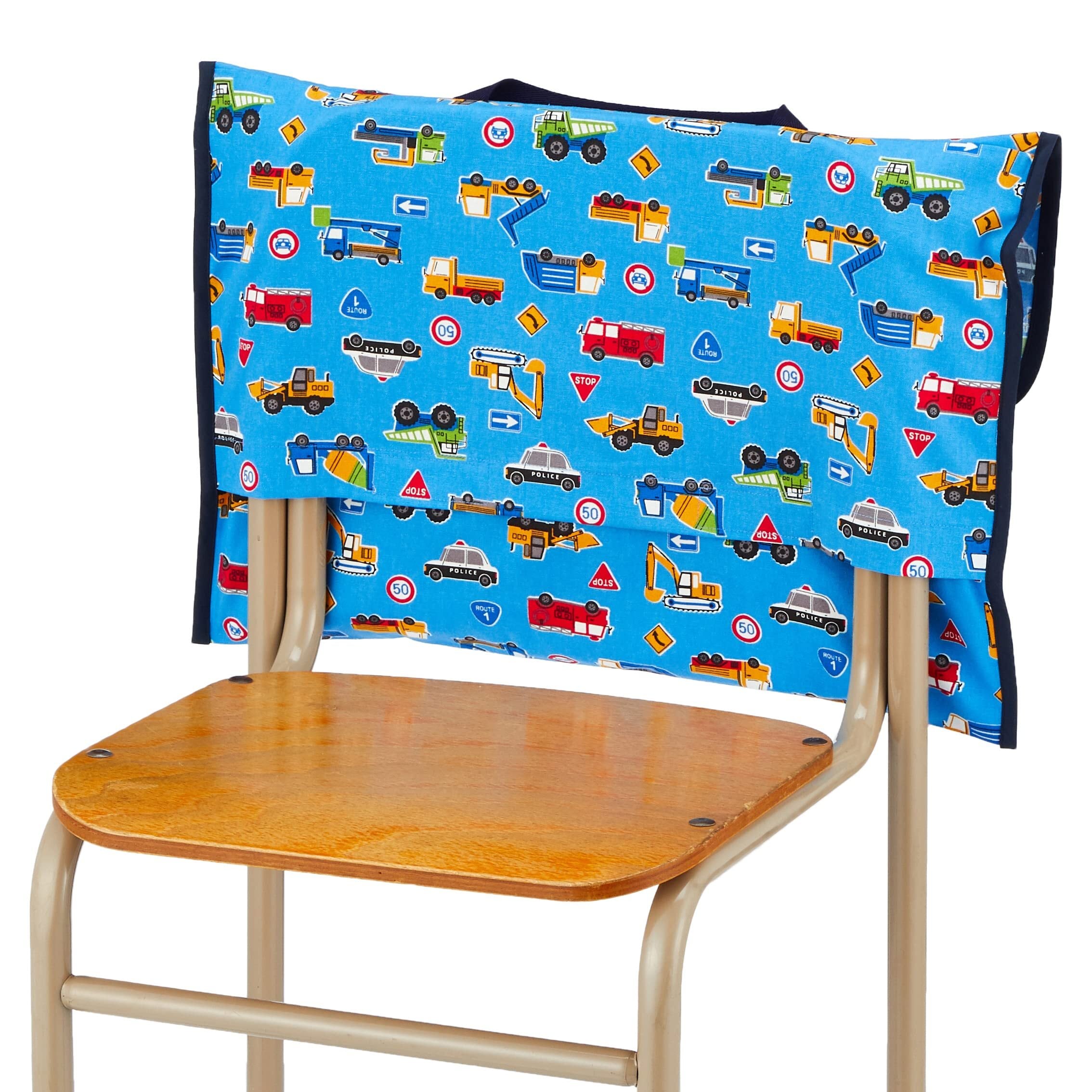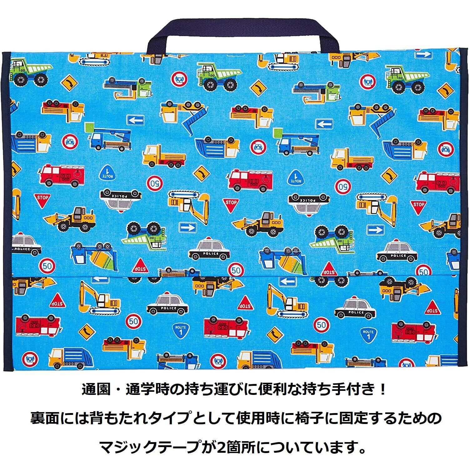 持ち手 付き で 通園 通学 時の持ち運びにも便利な 防災頭巾 カバー です。 椅子 への付け方は 座布団 タイプと 背もたれ タイプの2種類でご使用いただけます。消防車 や パトカー などかっこいい くるま がたくさんの柄で 男の子 におすすめの 生地 。ふた部分をめくった裏側に 名前 が書ける タグ 付き。