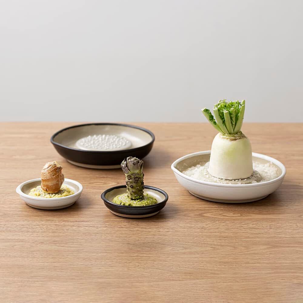 すり鉢、おろし器専門の元重製陶所が開発した陶器のおろし器。セラミックの破片が陶器に埋め込まれており、驚くほど軽い力でおろし料理ができる優れもの。また、食べ物の繊維がセラミックに絡みにくく、洗い流しも楽々。見た目がおしゃれなのでそのまま食卓へ。すりおろしながら食事を楽しめます。