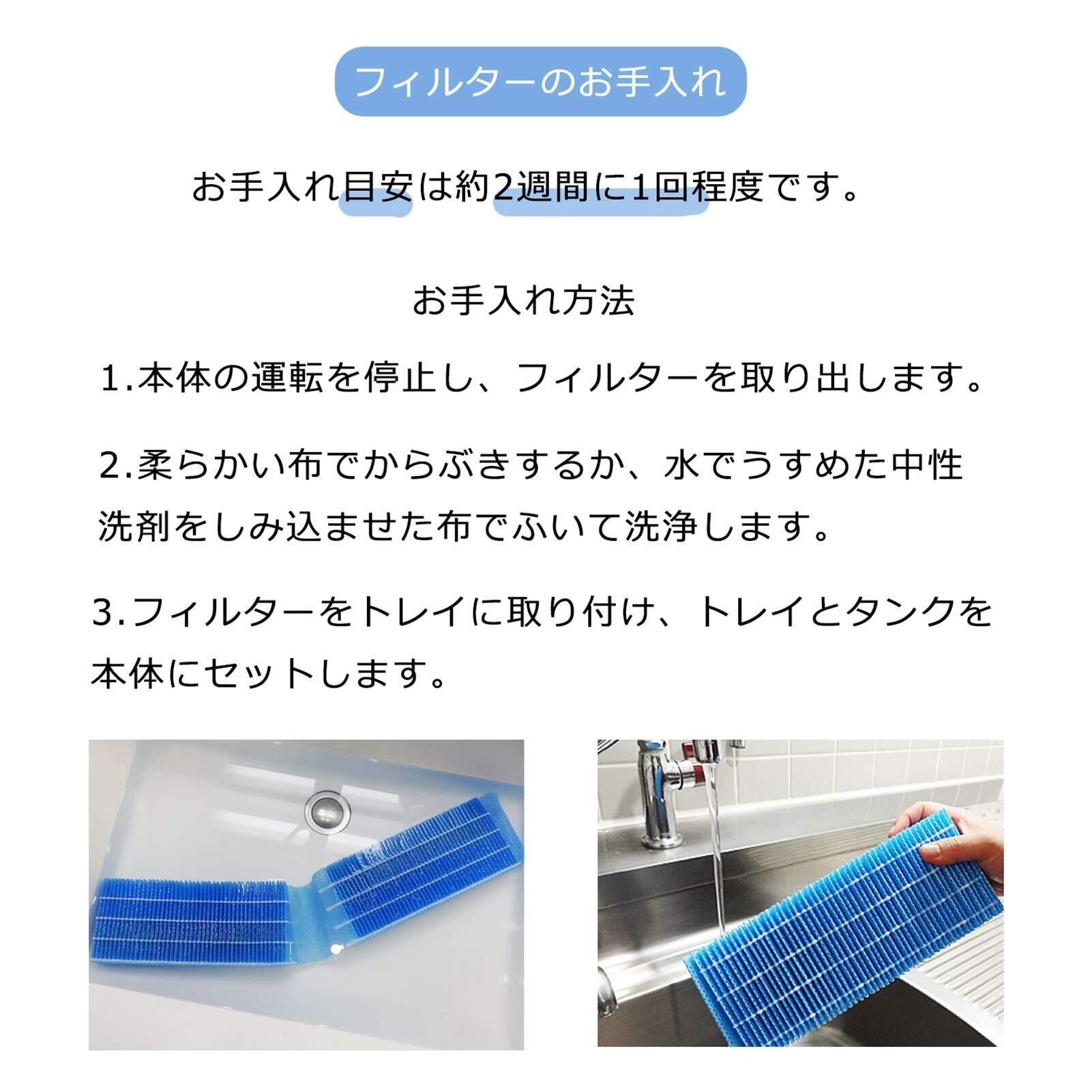 【お洗いで定期的なお手入れを!】洗いOKのタイプの加湿フィルターです。約2週間に1回程度、洗剤などを使って加湿フィルターお手入れをします。これで加湿器の運転効率と加湿能力がアップし、加湿器を長持ちさせます。