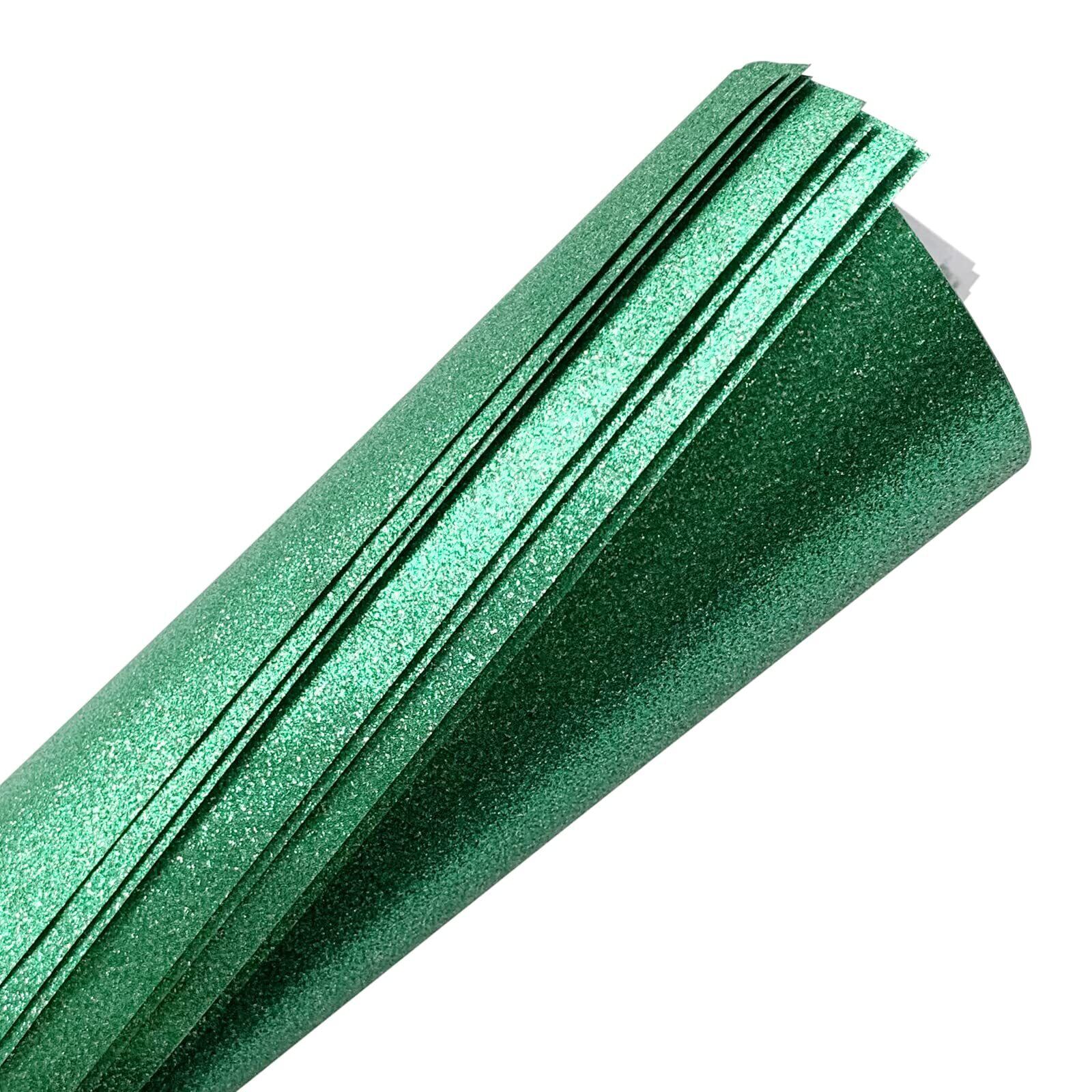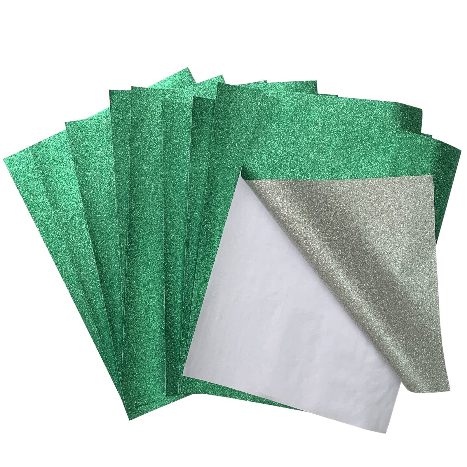 グリッターシート/シールタイプ きらきら ラメで目立つ! A4サイズ 応援うちわ 素材 DIY手芸用 10枚セット (グリーン)