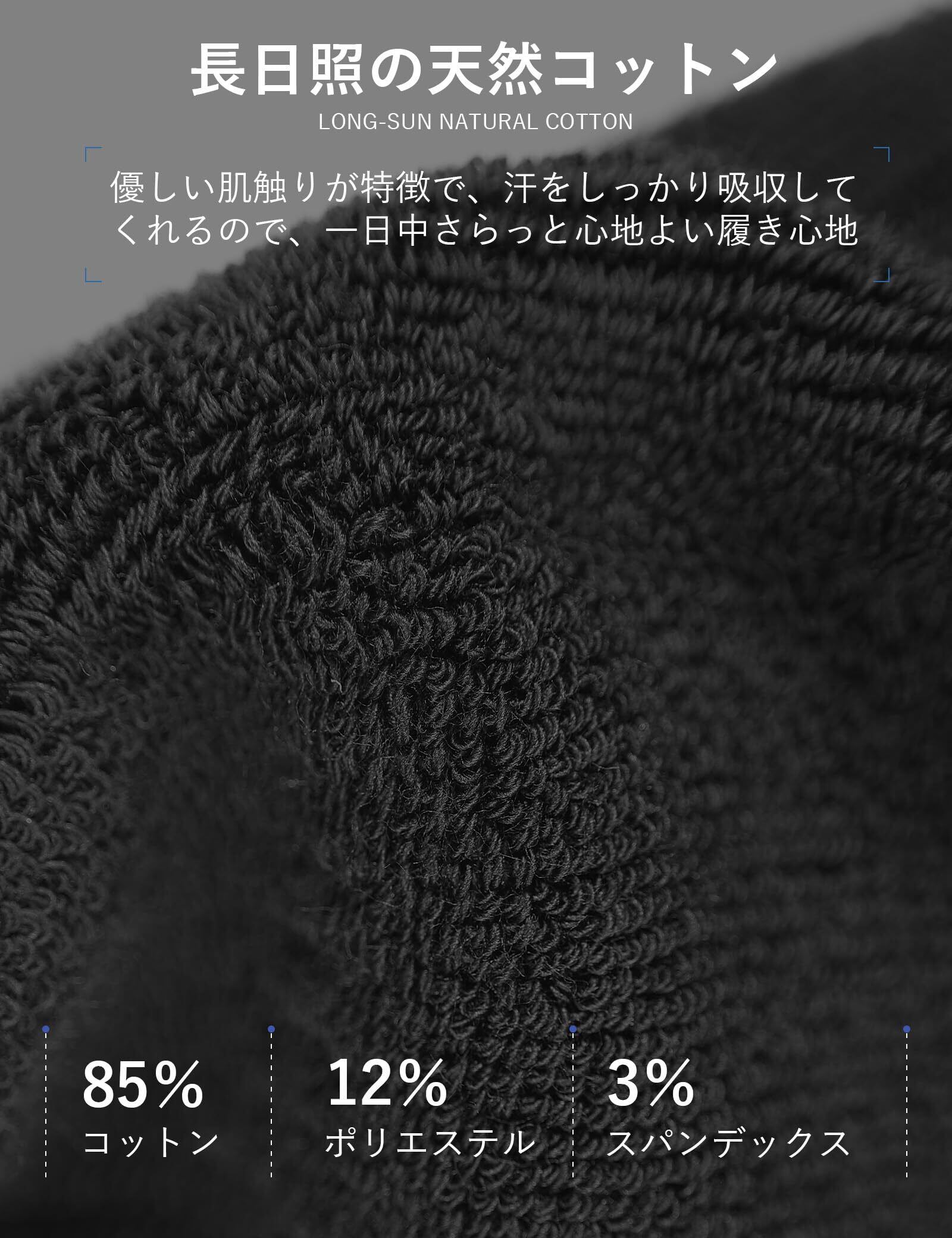 【吸汗・通気・防臭】天然綿とポリエステルを採用して肌にやさしいです。甲部分には通気性の高いメッシュ素材を採用し、気になる臭いの元となる蒸れを防ぎ、長時間の着用でもサラサラ。快適さと機能性を追求した、スポーツ愛好者に必要な一足です。