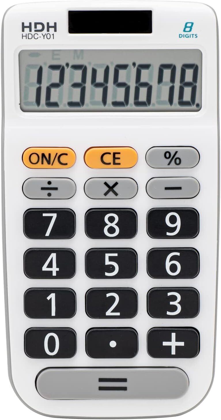 【数量限定】保土ヶ谷電子販売 電卓 ボタンが大きい 計算機 小型電卓 コンパクト 見やすい シンプル 8桁 学校 子供 計算 ホワイト HDC-Y01