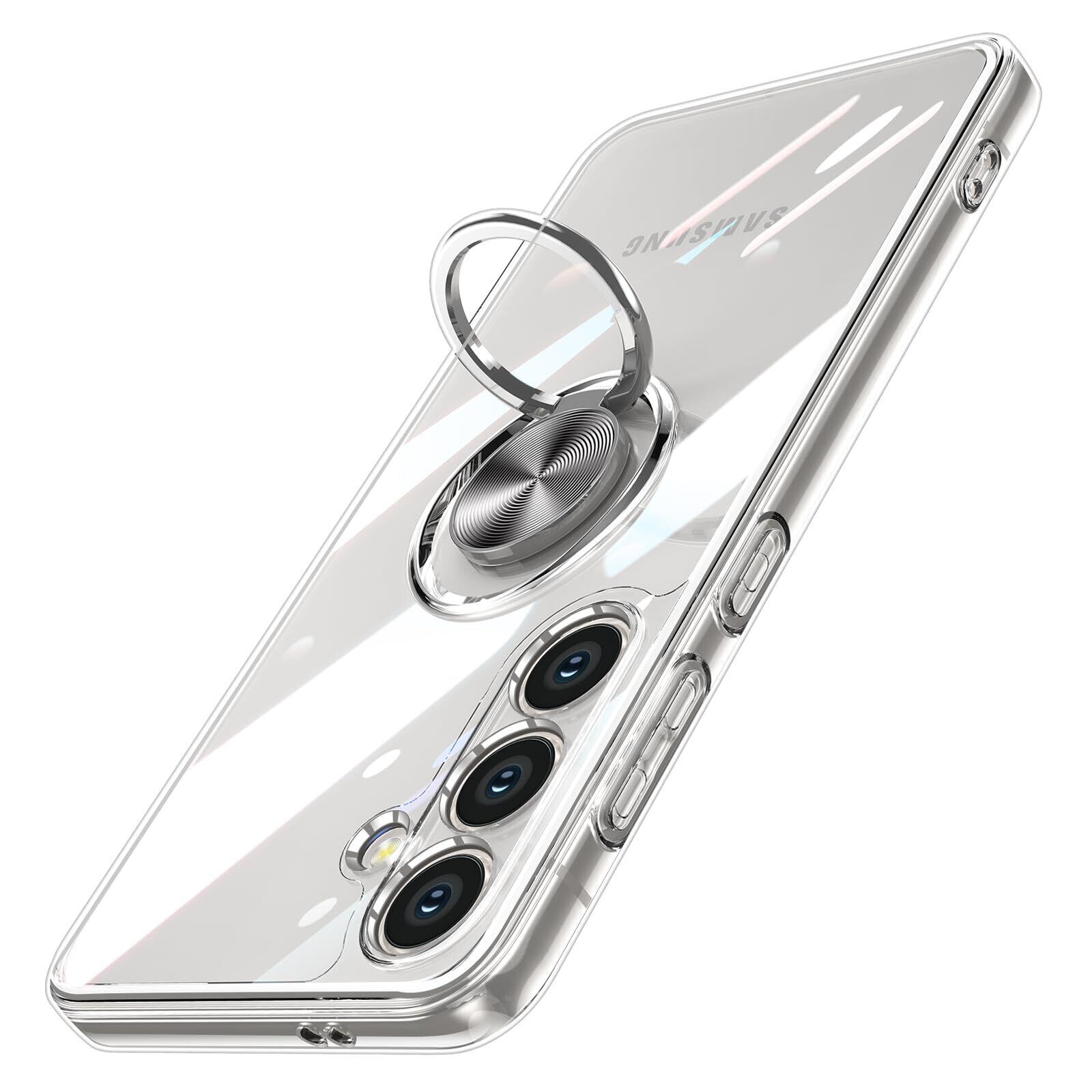 Galaxy S25 用 ケース クリア リング付き Samsung ギャラクシー S25 / SC-51F / SCG31 カバー 透明 おしゃれ OURJOY スマホケース メッキ加工 ソフトケース 耐衝撃 軽量 薄型 ストラップホール付き スタンド機能 車載ホルダー対応 携帯ケース・クリア