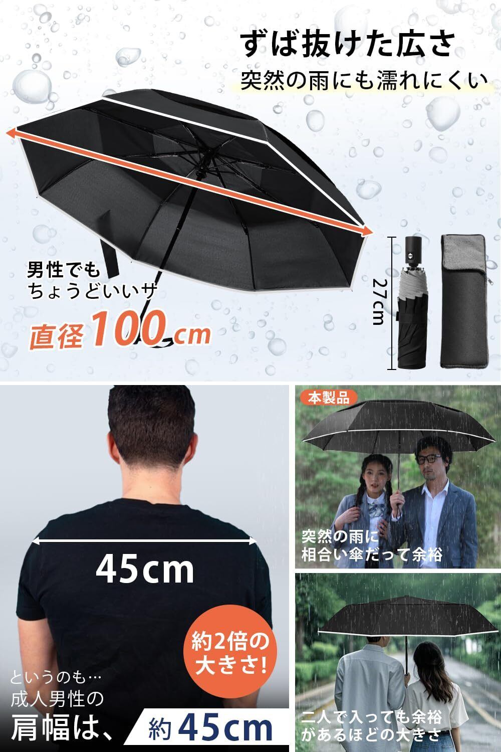 2025年最新版改善点『超軽量おりたたみ傘 メンズ・最新の構造設計を採用しました・反射テープデザイン・強風に耐えられる・傘テフロン加工』改善点:1.私たちの防風傘は、強風に負けないダブルベントキャノピーを採用しています。折り畳み傘人気の傘として、喜ばれています。2.私たちの雨傘は、テフロン加工されたキャノピーで作られており、厳しい天候に耐え、あなたを守ります。3.おしゃれな反射テープデザインで、街灯がない暗い夜道に、ドライバーの視認性を高めて、使用者の安全性も向上できる。4.傘は小さな力で開閉できます。5.開くときの衝撃力は小さく、自身と周りの人々の安全も保護します。6.閉める時も、小さい力でできるので、女の子、子供、そして高齢者でも簡単に使用できます。折り畳み傘 メンズ 軽量 傘の重量は約260g、 ごこの自動開閉折りたたみ傘は市場の自動開閉折り畳み傘(通常350-450g以上 )より40%軽いです。260g VS 350g以上。頑丈で耐久性のあるグラスファイバー製の傘骨を8本採用することで高強度を実現、一般的な折りたたみ傘よりも耐風性に優れています。