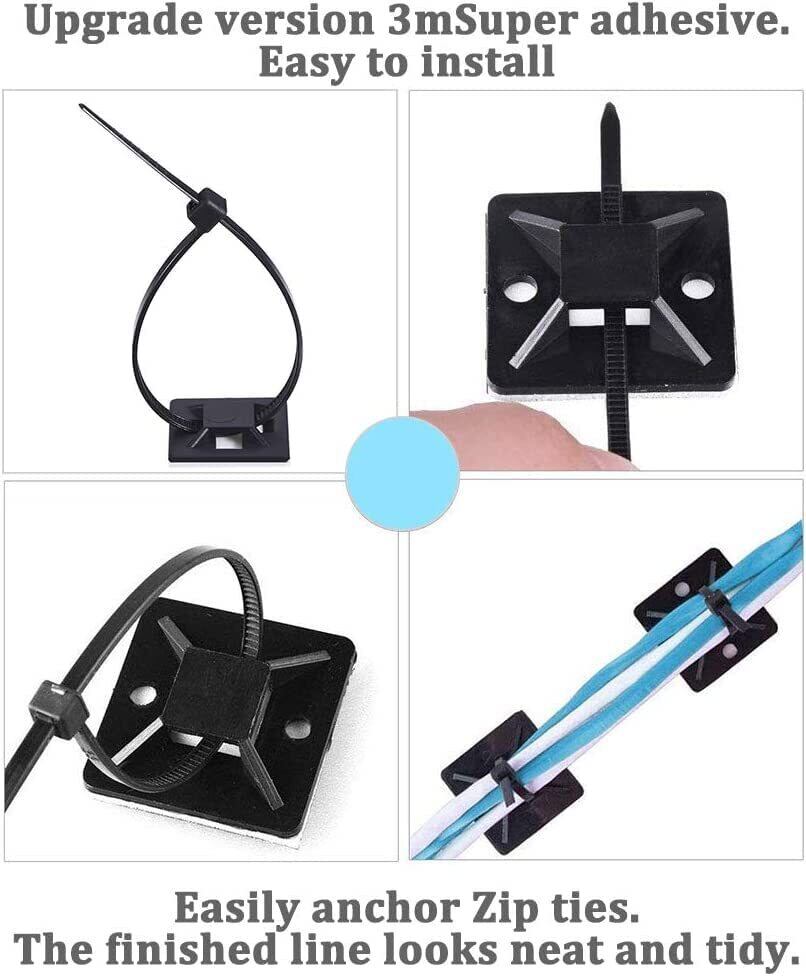 【セット】パッケージ内容:2.86 cm x 2.79 cmのマウントベース*50個、3.6 x 200 mmナイロン製パンドウイット*50本 色:ブラック。結束バンドとマウントベースを組み合わせて使用すれば、簡単にコードをきれいに整理できます。