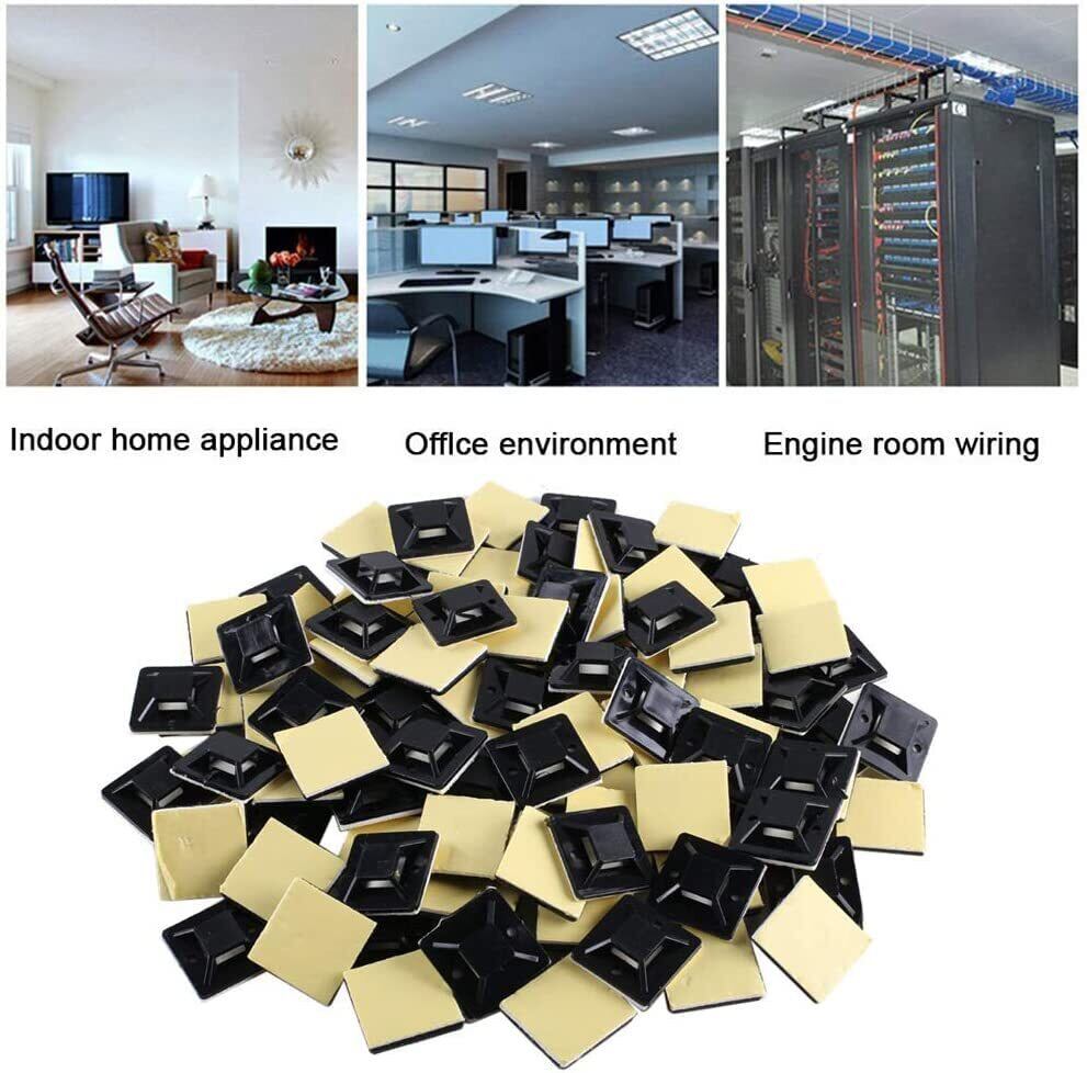 ケーブルタイ マウントベース ナイロン結束バンド 50個 セット ブラック 強力粘着テープ付き ナイロンケーブルストラップ 配線 固定具 ケーブル コード 整理 収納 耐熱 耐候性 By Viaky